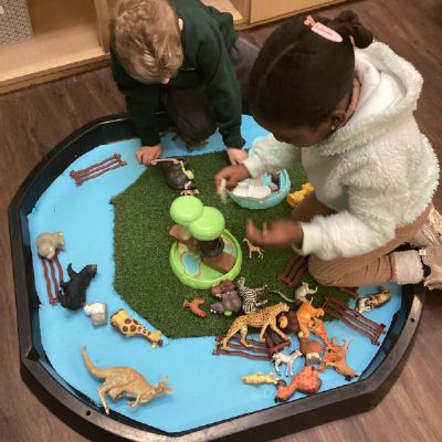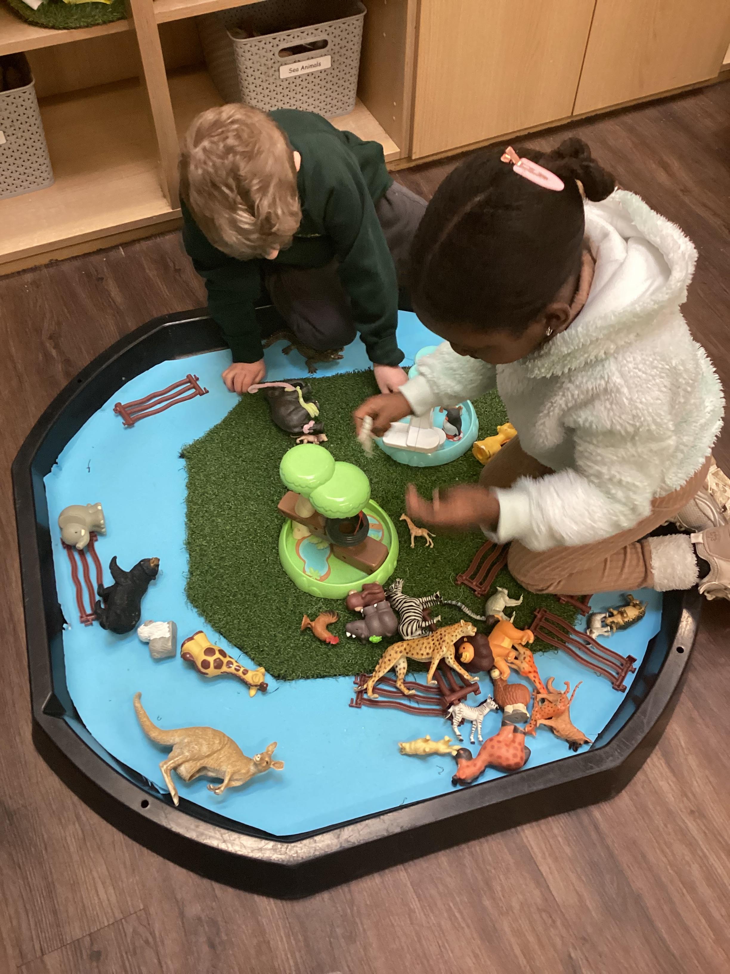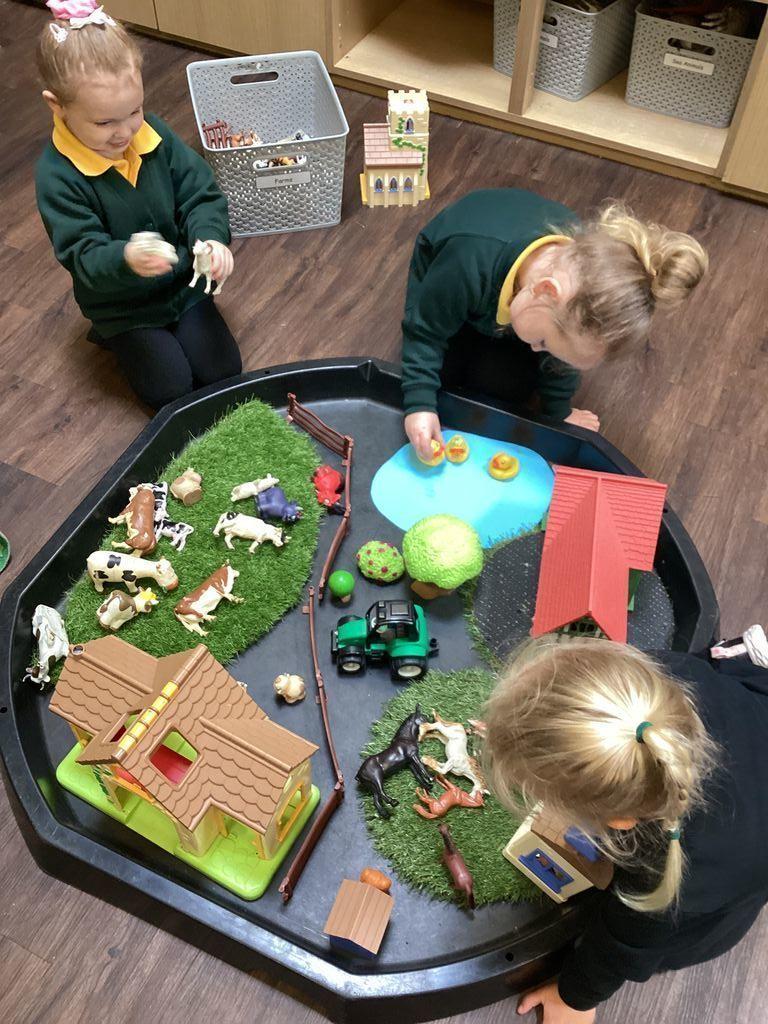 *Begin to develop complex stories using small world equipment like animal sets, dolls and dolls houses, etc.