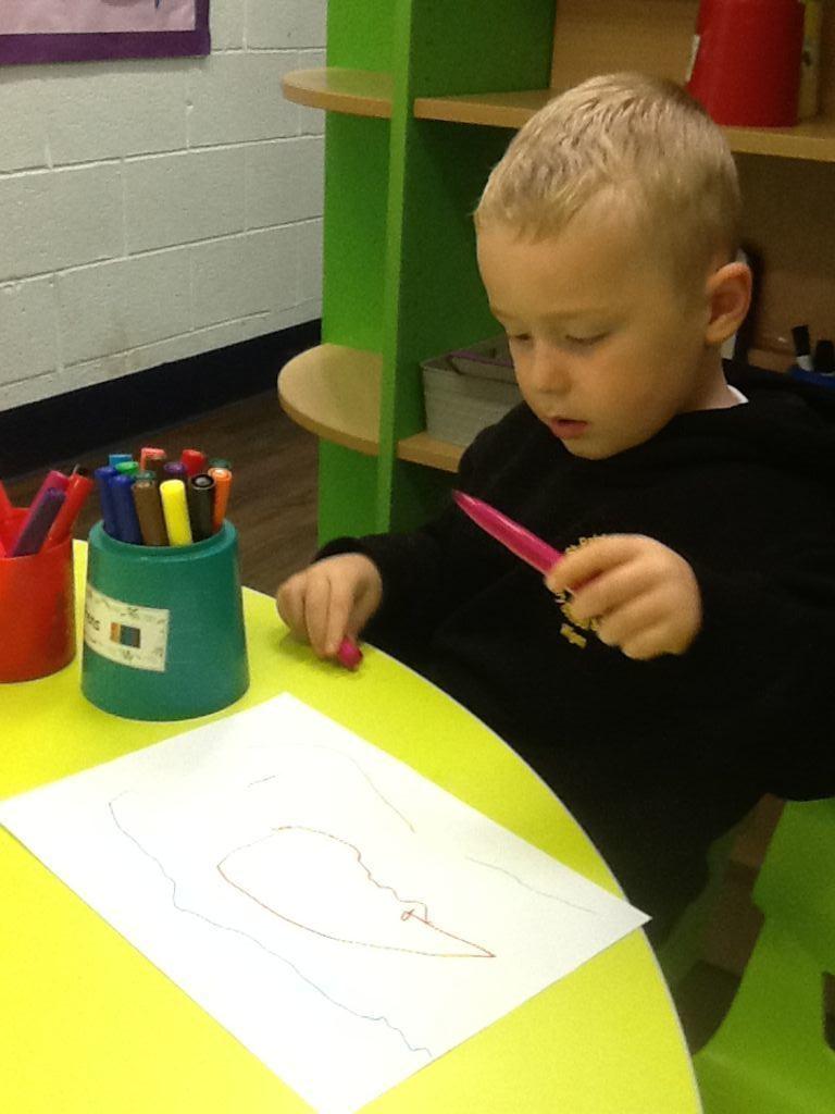 *Draw with increasing complexity and detail, such as representing a face with a circle and including details.