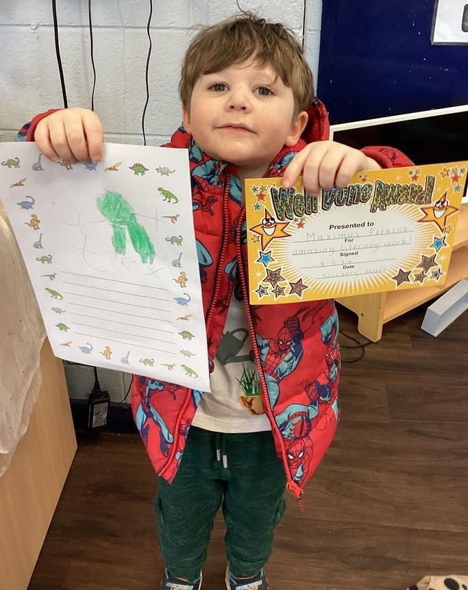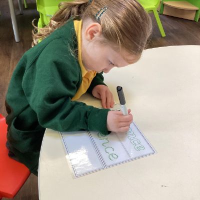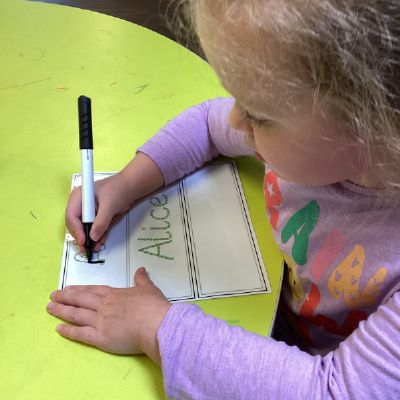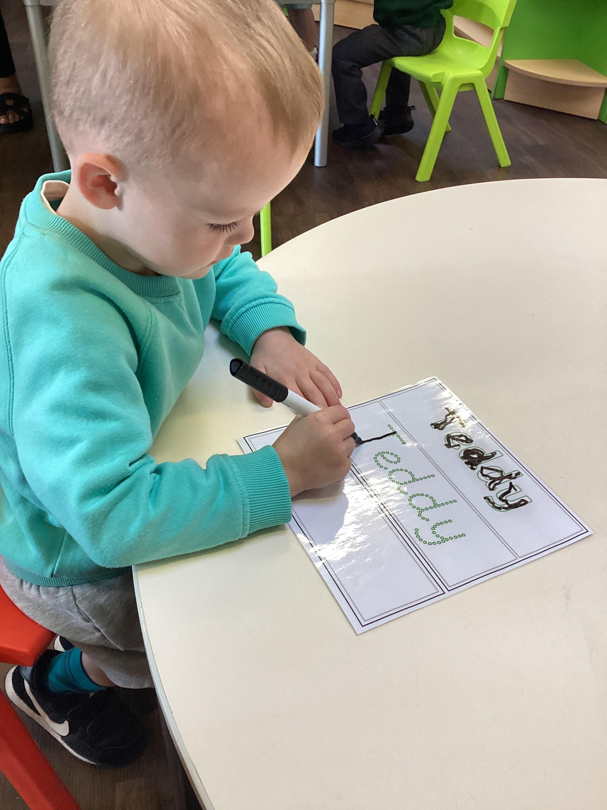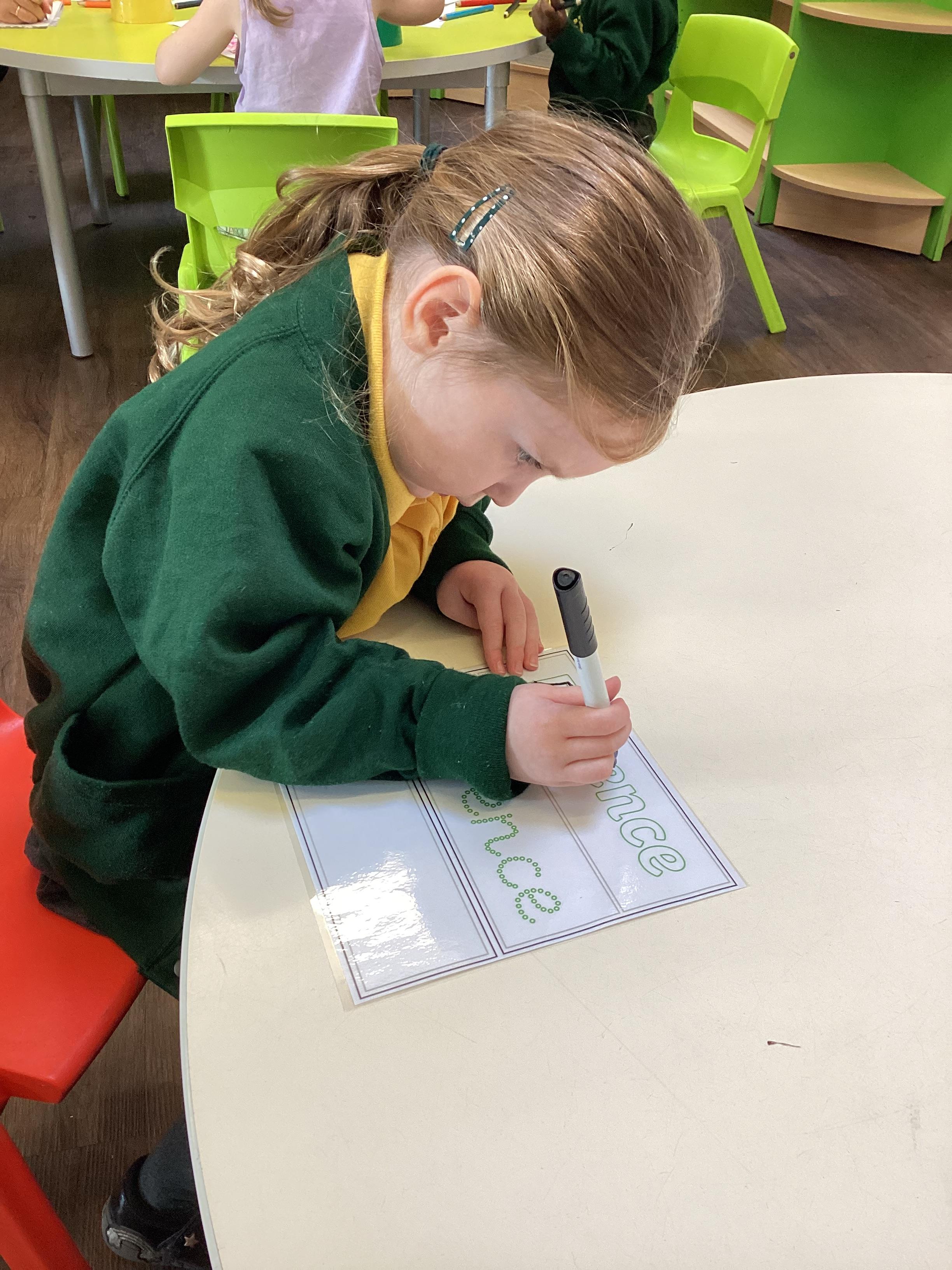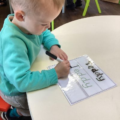 *Use some of their print and letter knowledge in their early writing. For example: writing a pretend shopping list that starts at the top of the page; writing ‘m’ for mummy