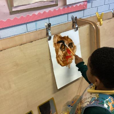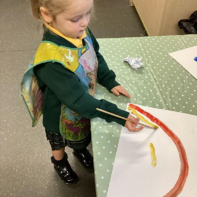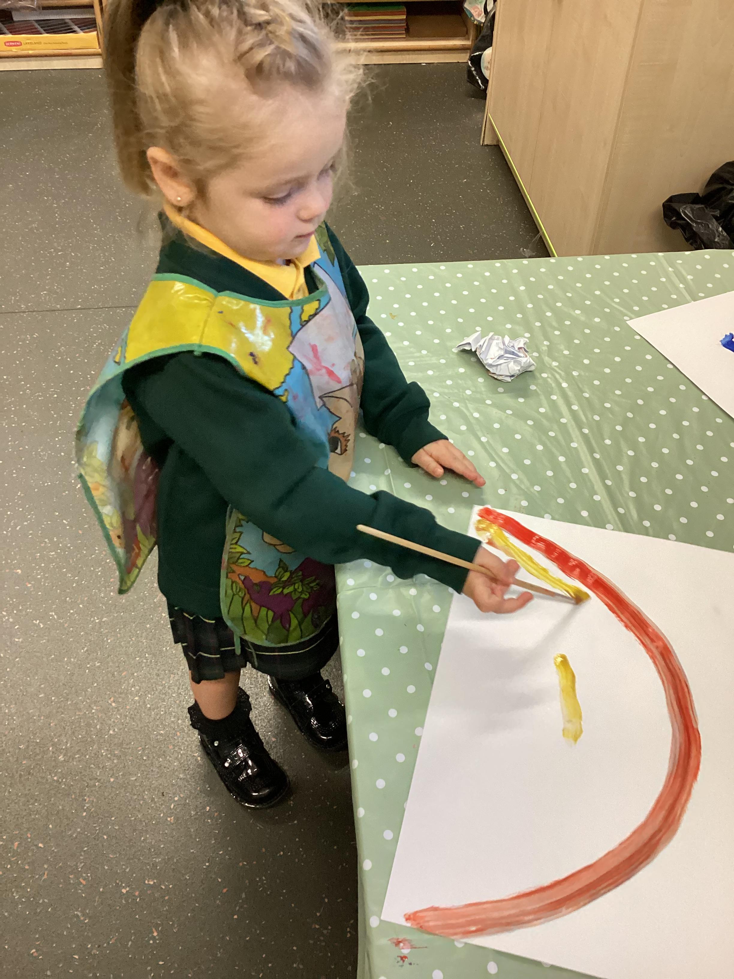*Use large-muscle movements to wave flags and streamers, paint and make marks.