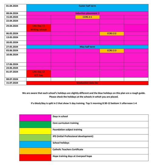 Trainees' academic study with Liverpool Hope University is spread over the year, commencing with an initial induction day in September.