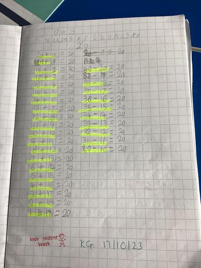 • Represent and use number bonds and related subtraction facts within 20.