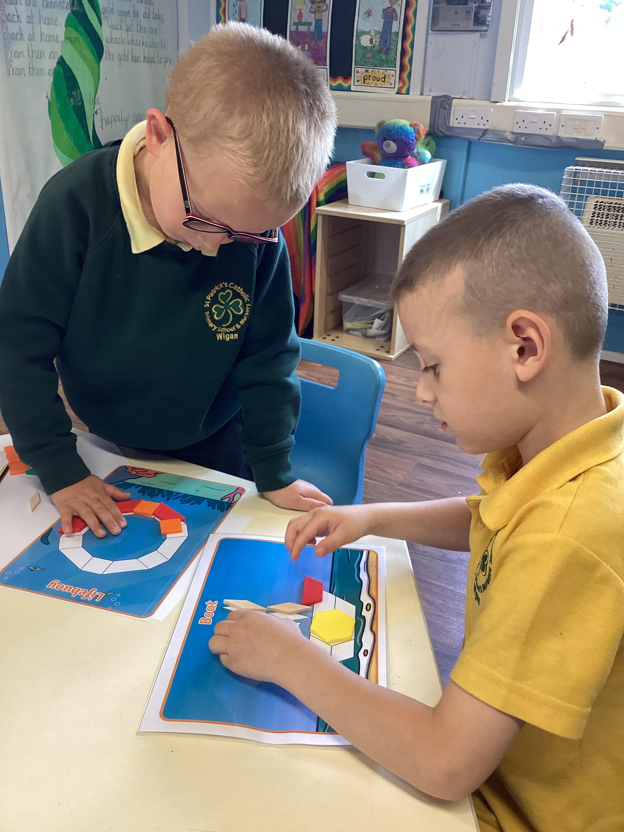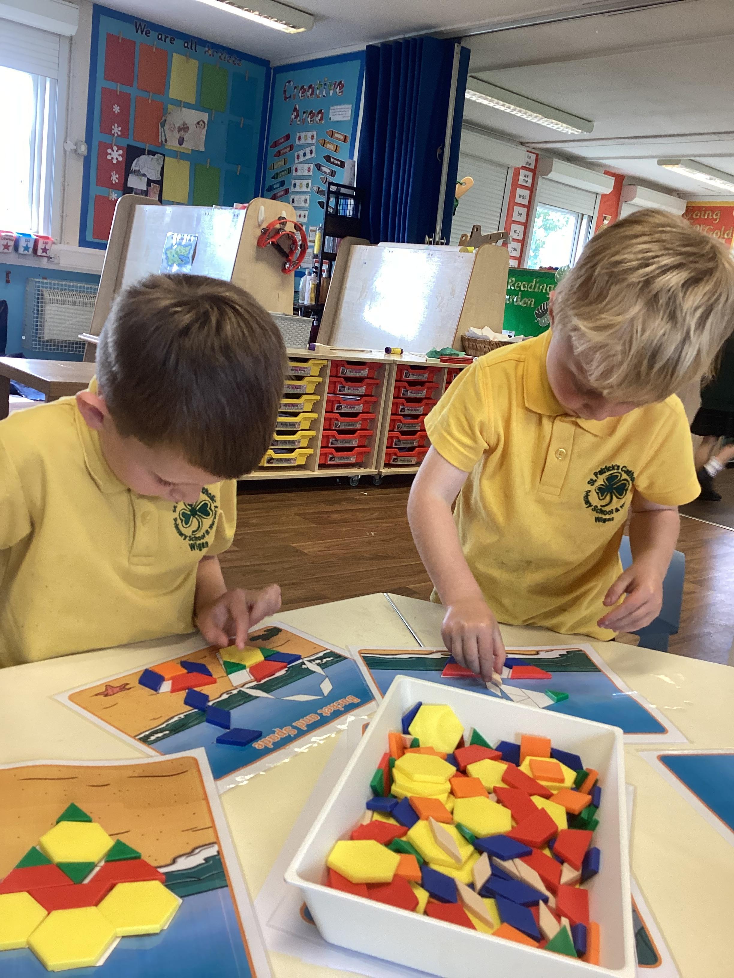 *Compose and decompose shapes so that children recognise a shape can have other shapes within it, just as numbers can.