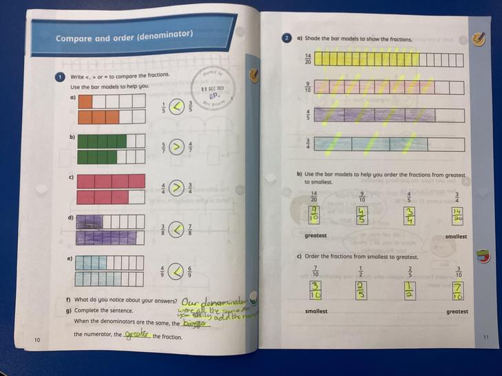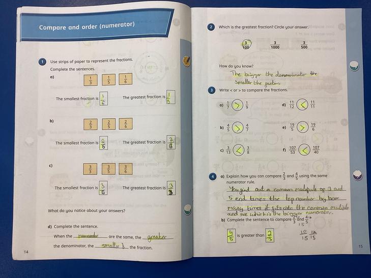 • Compare and order fractions, including fractions > 1.