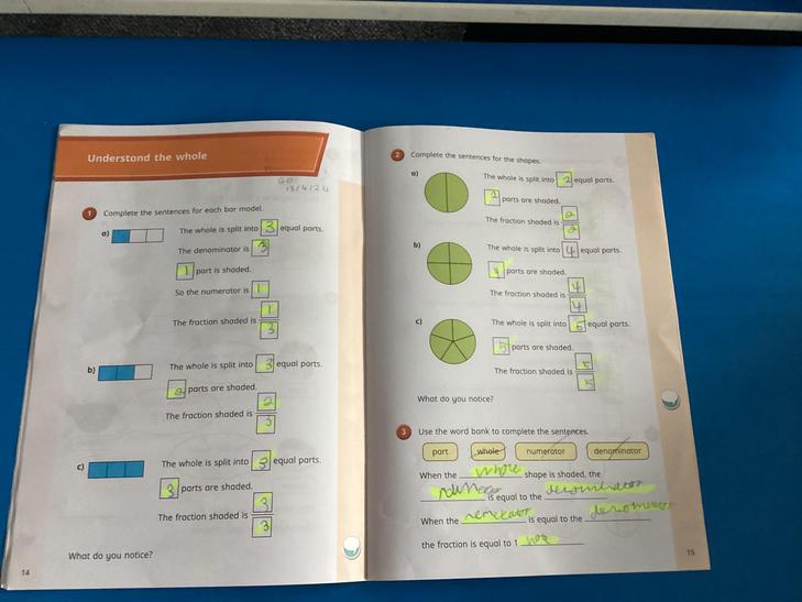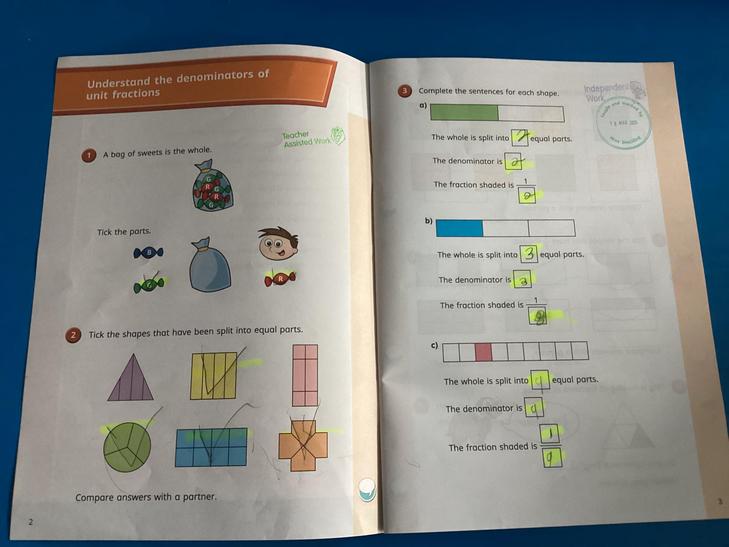 • Recognise, find and write fractions of a discrete set of objects: unit fractions and non - unit fractions with small denominators.