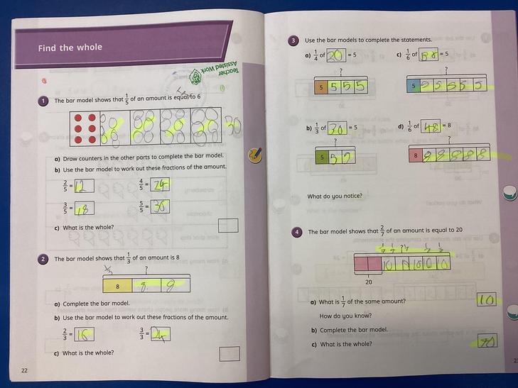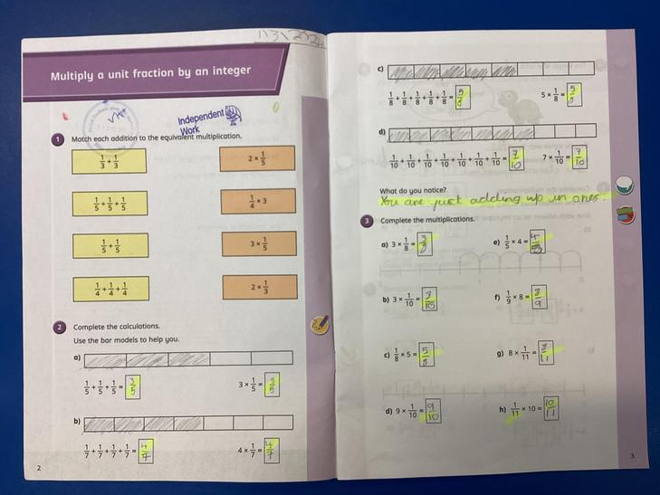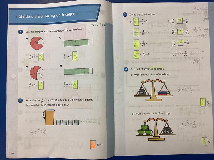 • Solve problems involving increasingly harder fractions to calculate quantities, and fractions to divide quantities, including non-unit fractions where the answer is a whole number.