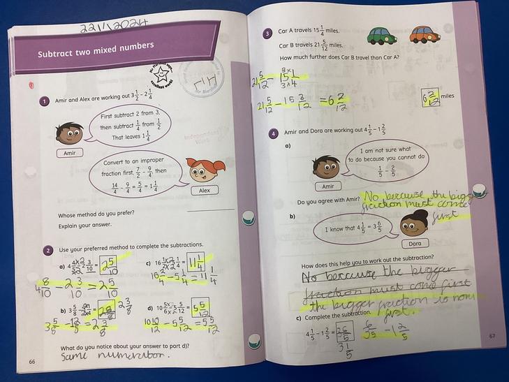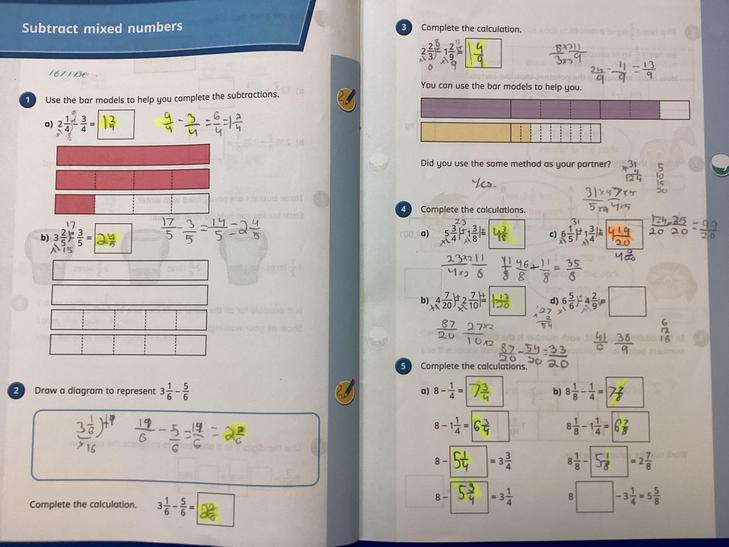 • Add and subtract fractions with different denominators and mixed numbers, using the concept of equivalent fractions.