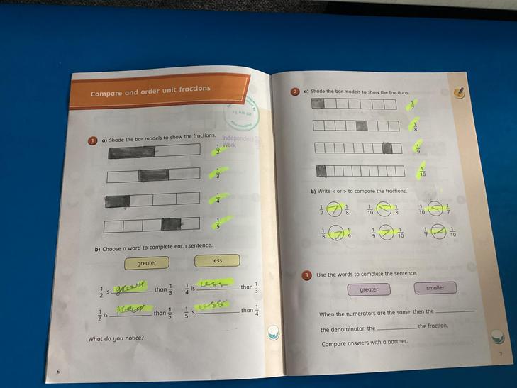 • Add and subtract fractions with the same denominator within one whole compare and order unit fractions, and fractions with the same denominators.