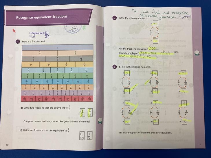 • Recognise and show, using diagrams, families of common equivalent fractions.