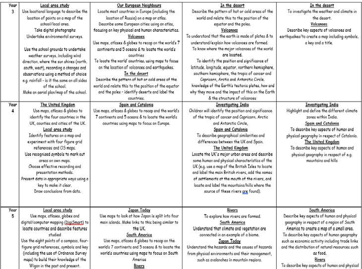 In Key Stage Two, children extend their knowledge and understanding beyond the local area to include the United Kingdom and Europe, North and South America. This will include the location and characteristics of a range of the world’s most significant human and physical features. They develop their use of geographical tools and skills to enhance their locational and place knowledge.
