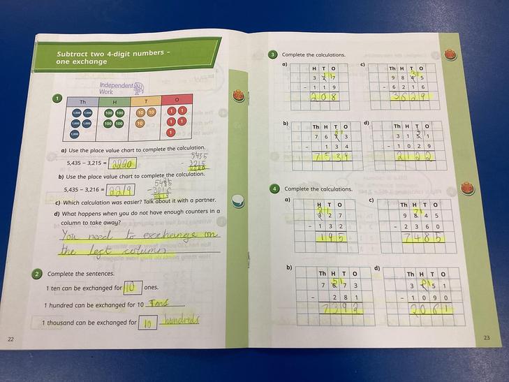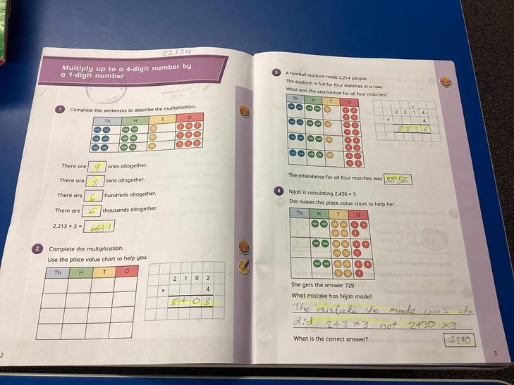 In Lower KS2, the principal focus of mathematics teaching is to ensure that pupils become increasingly fluent with whole numbers and the four operations, including number facts and the concept of place value. This should ensure that pupils develop efficient written and mental methods and perform calculations accurately with increasingly large whole numbers. At this stage, pupils should develop their ability to solve a range of problems, including with simple fractions and decimal place value. Teaching should also ensure that pupils draw with increasing accuracy and develop mathematical reasoning so they can analyse shapes and their properties, and confidently describe the relationships between them. It should ensure that they can use measuring instruments with accuracy and make connections between measure and number. By the end of year 4, pupils should have memorised their multiplication tables up to and including the 12 multiplication table and show precision and fluency in their work. Pupils should read and spell mathematical vocabulary correctly and confidently, using their growing word reading knowledge and their knowledge of spelling.