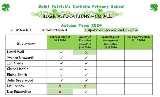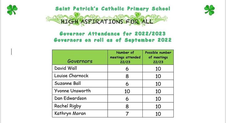 The Governing Body of St Patrick's School are committed to achieving the highest aspirations for all children.