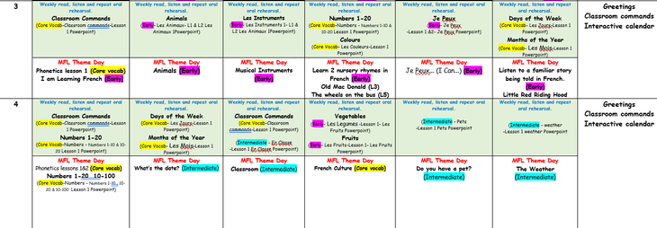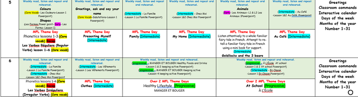 Pupils will continuously build on their previous knowledge as they progress in their foreign language learning journey through the primary phase. Previous language will be recycled, revised, recalled and consolidated whenever possible and appropriate.
