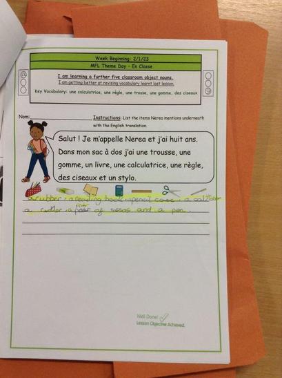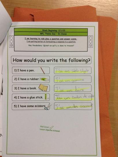 MFL teaching focuses on developing children as competent readers, writers and speakers of French. Our principle aim is to develop the children's knowledge, confidence and understanding. We believe that our children learn best when: