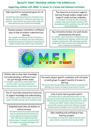 We recognise the unique needs of each child and support them in developing the whole child. We have a supportive ethos and our approaches support the children in developing both their collaborative and independent skills. The impact of our MFL curriculum is measured in the experiences, confidence and competence of our children within the subject. We ensure children receive the experiences they require, both within and beyond the curriculum, to develop their skills and knowledge and become confident.