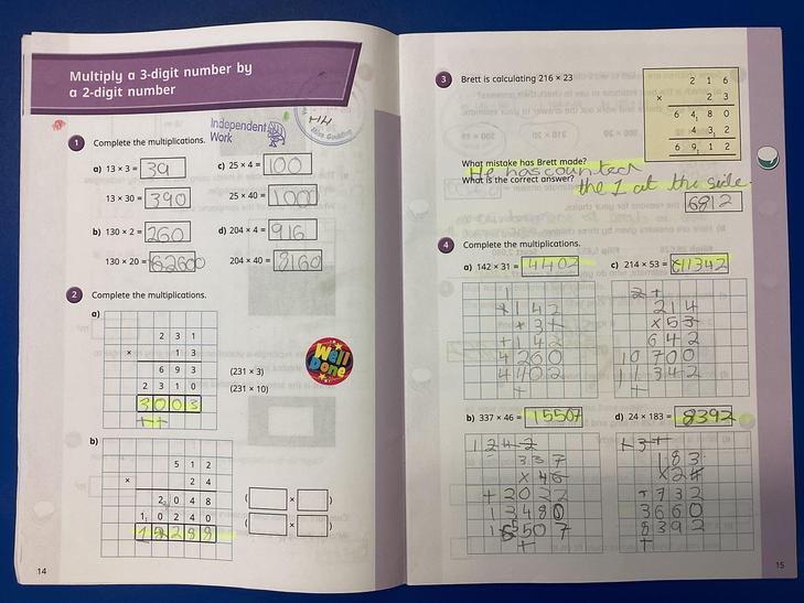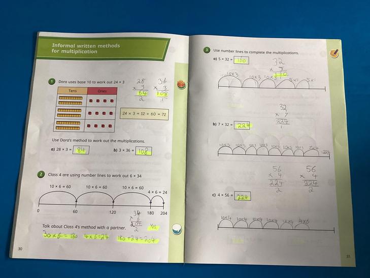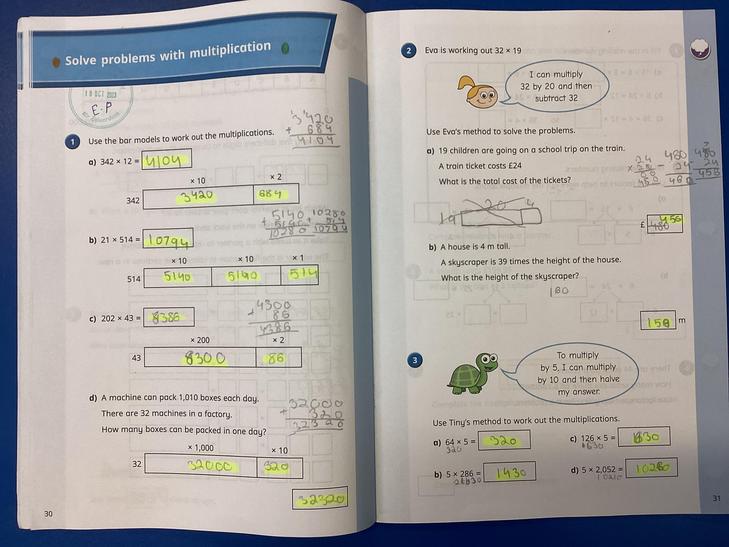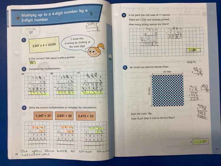 Multiply multi-digit numbers up to 4 digits by a two-digit whole number using the formal written method of long multiplication.