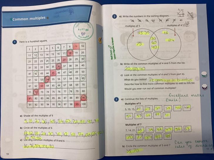 Identify multiples and factors, including finding all factor pairs of a number, and common factors of two numbers.