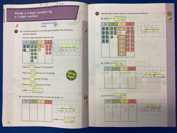Divide numbers up to 4 digits by a one-digit number using the formal written method of short division and interpret remainders appropriately for the context.