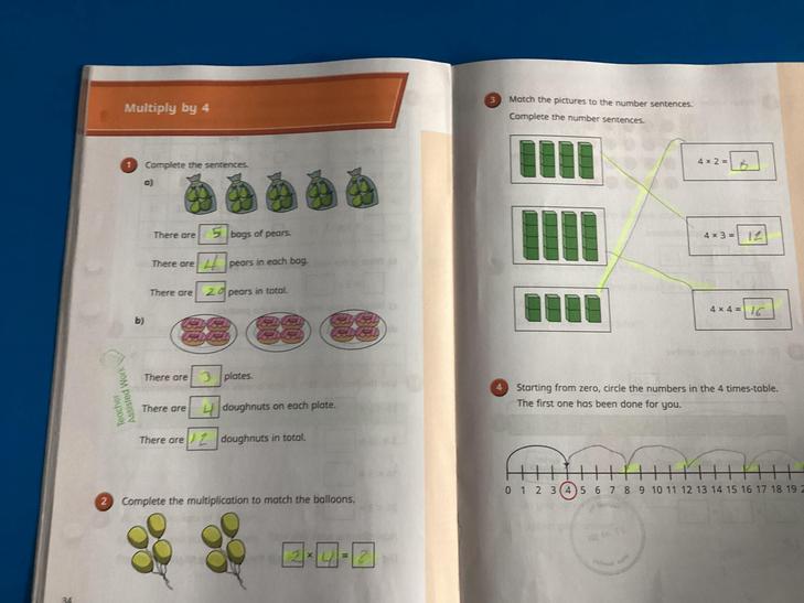 Recall and use multiplication and division facts for the 3, 4 and 8 multiplication tables.