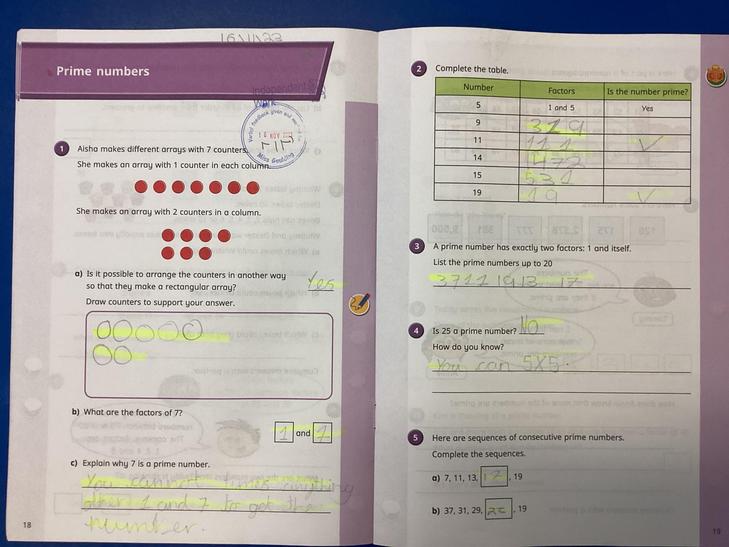 Establish whether a number up to 100 is prime and recall prime numbers up to 19.
