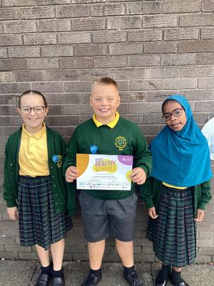 On Thursday 17th October, we were delighted to achieve our Wigan Healthy Schools' Award. Patrick, Emily and Emman - three of our Key Stage 2 Wellbeing Ambassadors - were proud to receive it on behalf of all of us at St Patrick's Catholic Prim