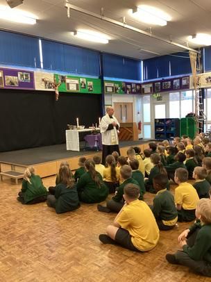 During the Summer Holidays, two new learning spaces were created in the Key Stage 2 Building. Today, Wednesday 4th December, Father O'Shea came in to School to celebrate a Blessing Service. Our Catholic Life Ambassadors read beautifully and explained to Father O'Shea what the different areas to be Blessed are used for. At the end of the Service, Father O'Shea commented on how beautiful the children's singing was. Well done to all involved!
