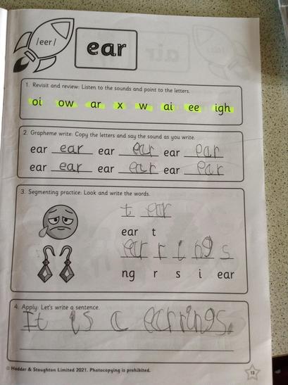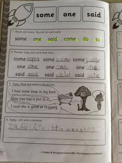 • Read common exception words, noting unusual correspondences between spelling and sound and where these occur in the word