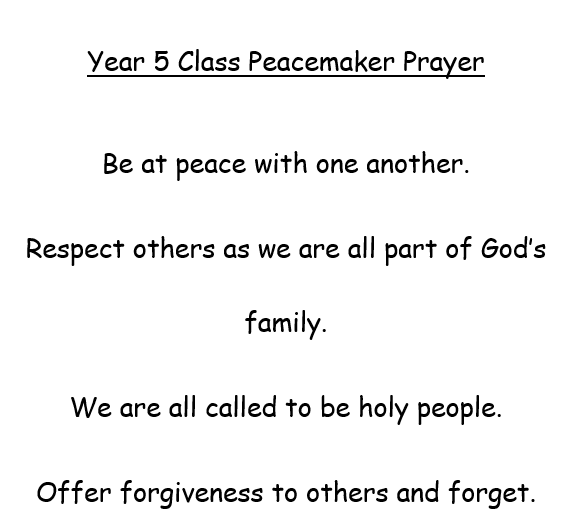 At St Patrick's, we strive to promote a community of peace and fellowship for all members. Through our Mission Statement, Catholic Ethos and Whole School Values, all of our children are encouraged to be peacemakers. Through Collective Worships, PSHE, Speaking and Listening and playground managements, our children learn to understand and embody what it means to be a peacemaker.