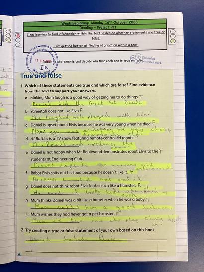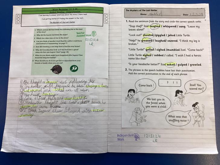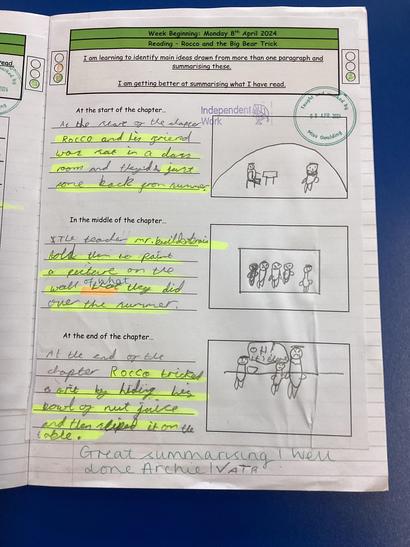 In our guided reading sessions, the children will access texts that are of an accurate reading level that have been selected from the Rising Stars Reading Planet resources, to ensure the progression of reading skills as they transition through the school. The children develop their independent skills, in relation to inferencing, predicting, summarising, retrieving, commentating, identifying and explaining, by participating in guided reading sessions and by accessing an independent reading task that allows them to further consolidate their skills.