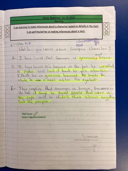 - Drawing inferences such as inferring characters’ feelings, thoughts and motives from their actions, and justifying inferences with evidence