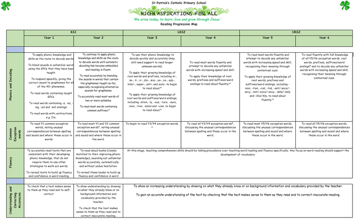 At St. Patrick’s, reading is taught through a variety of mediums; early reading is primarily taught using systematic, synthetic phonics that follows the guidance from the Rocket Phonics scheme.