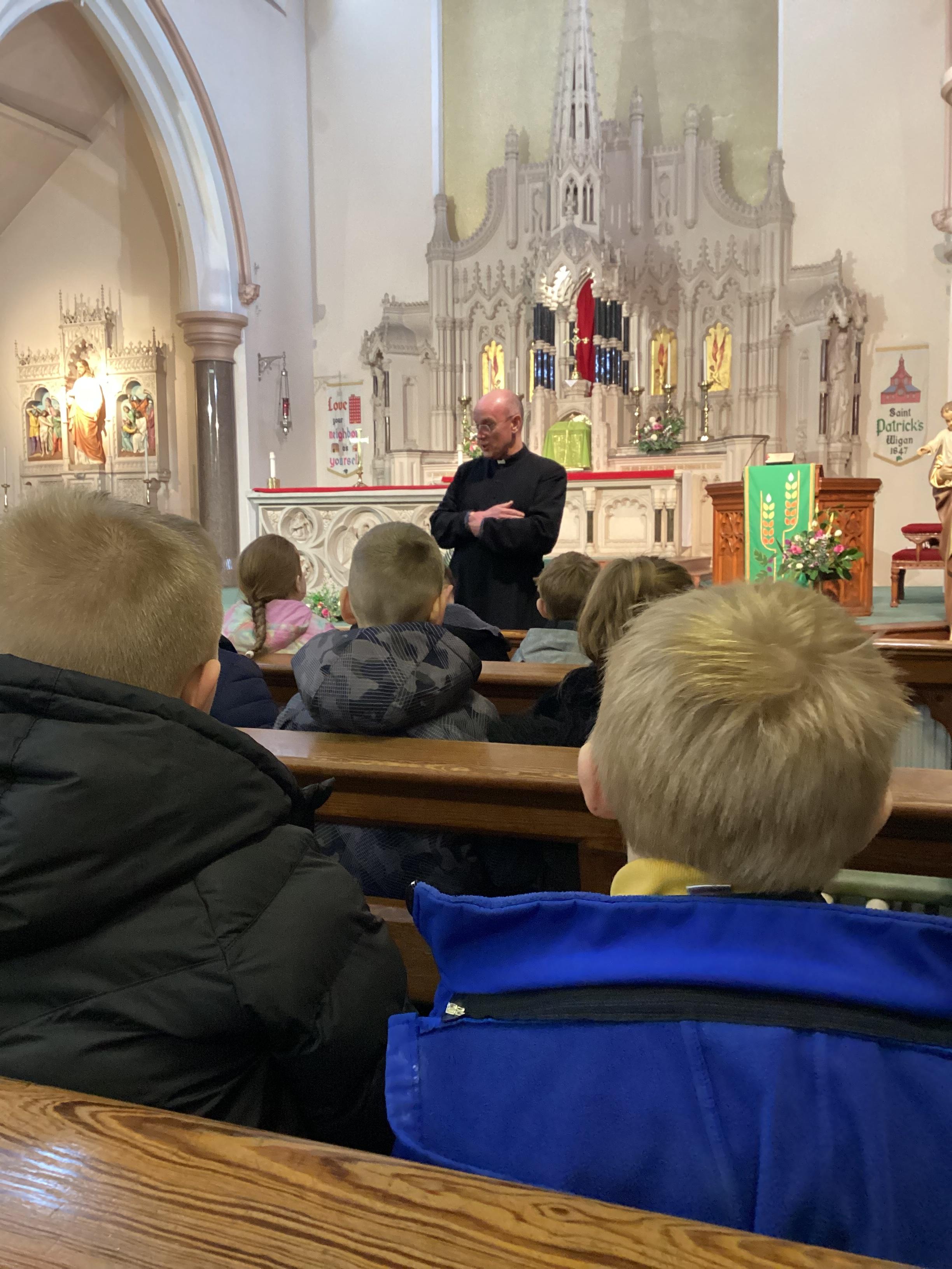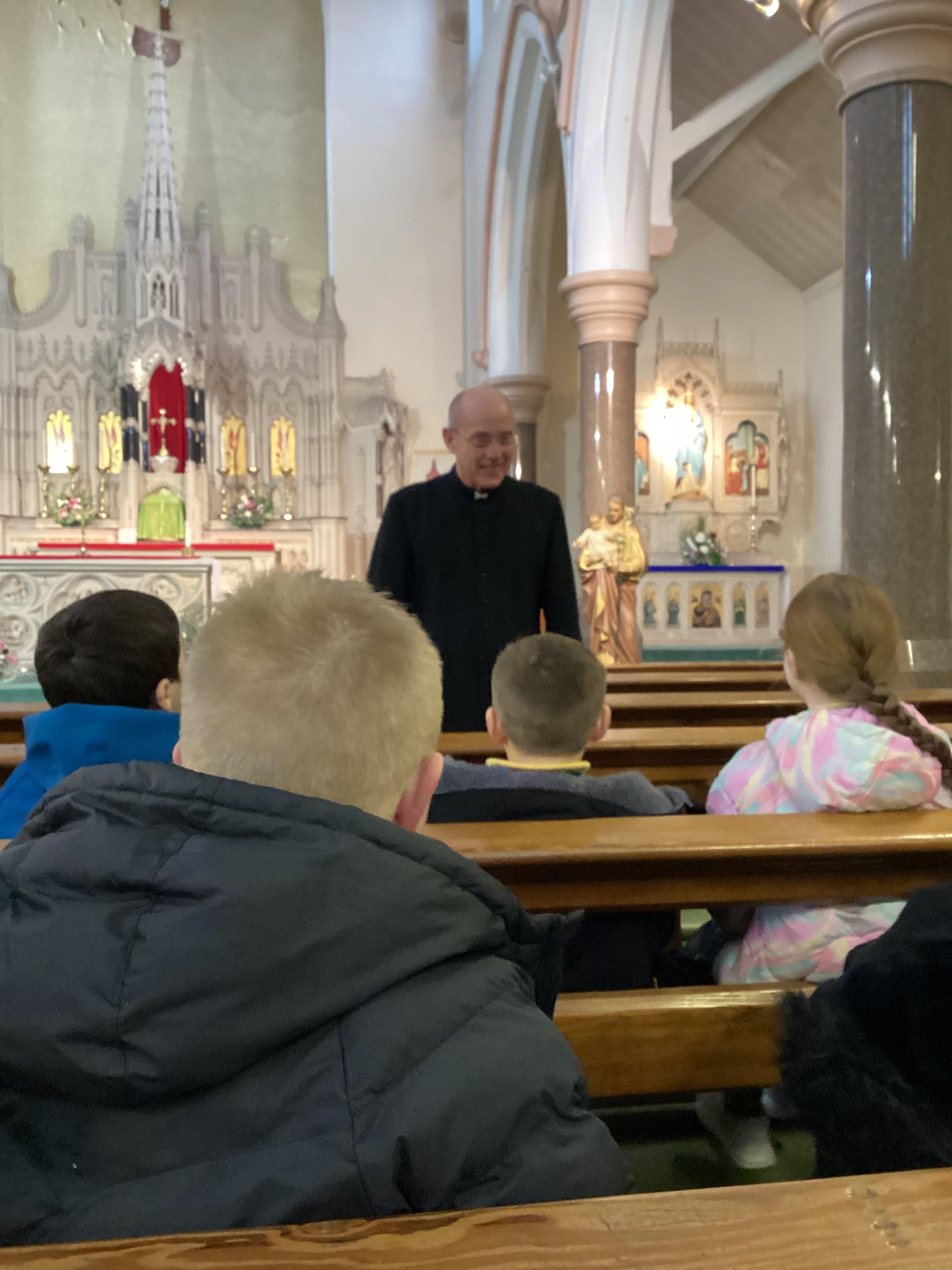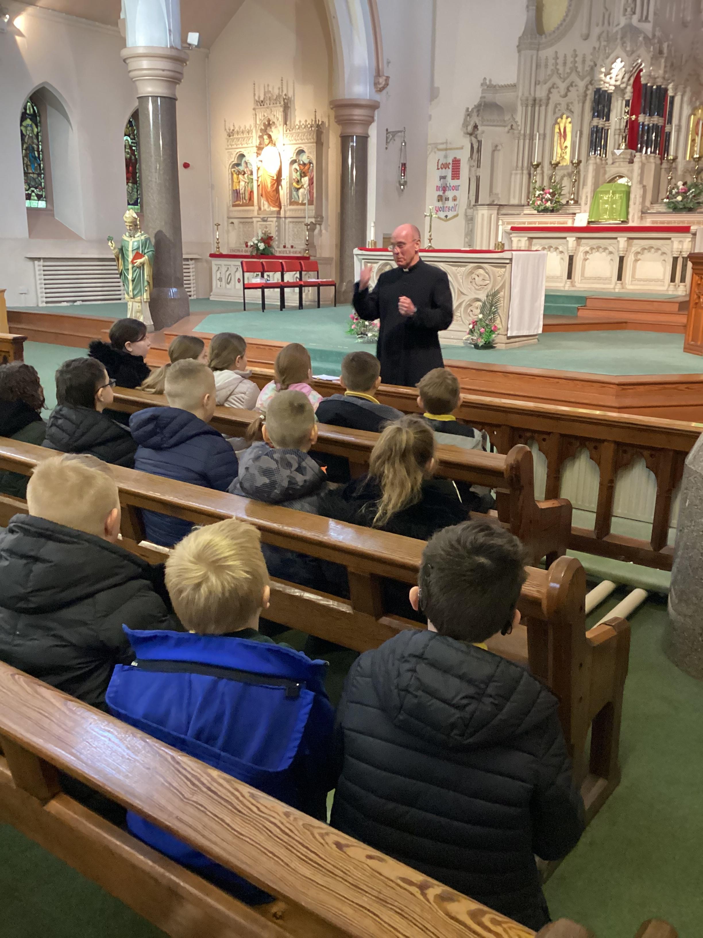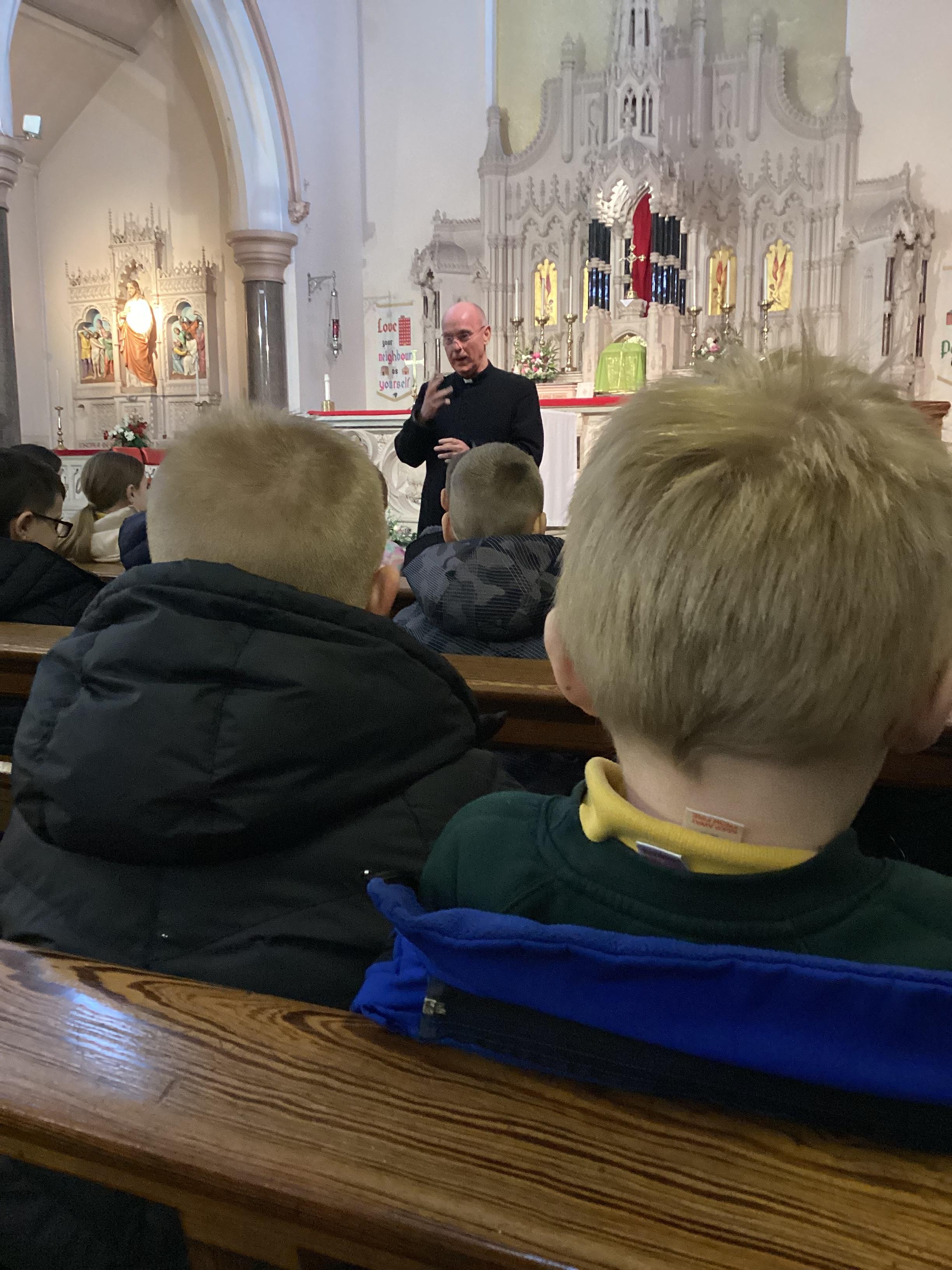 This morning, the Sacramental Preparation Group visited Father O'Shea at Church to discuss the Sacrament of Reconciliation. Father explained the importance of this Sacrament and showed the children the different parts of the Confessionals. The Group will make their Confessions over the next few weeks. Please pray for the children at this time.