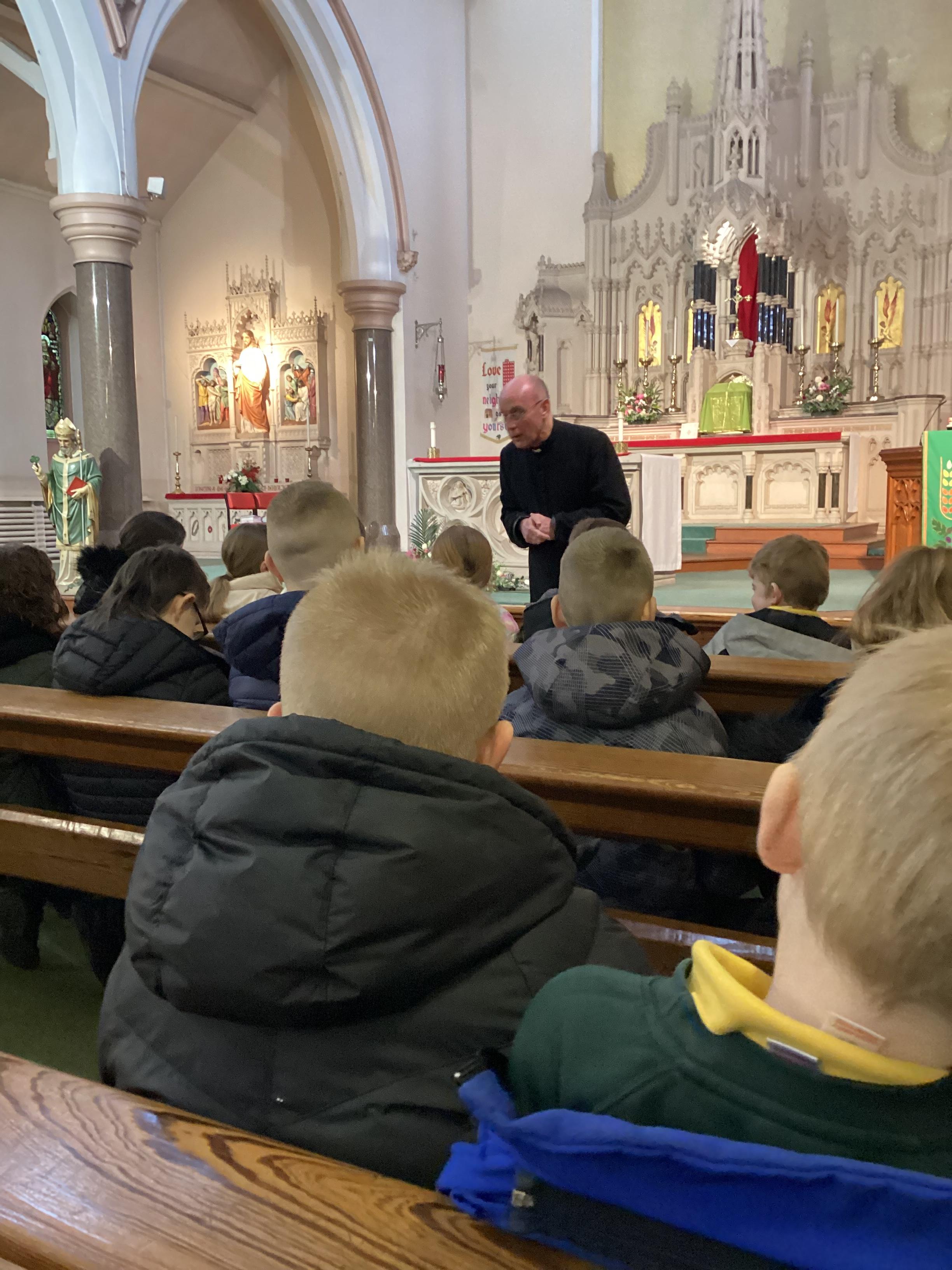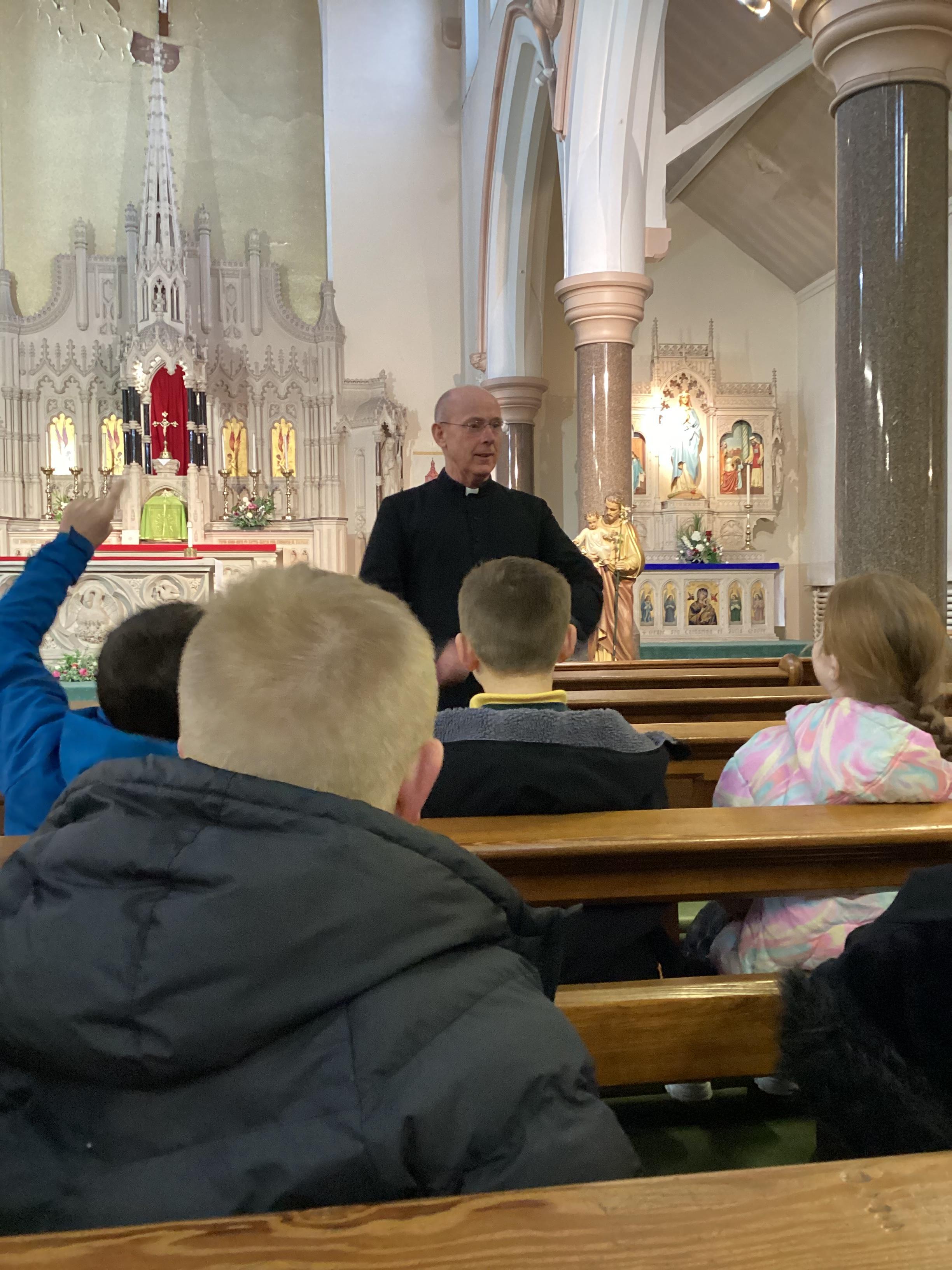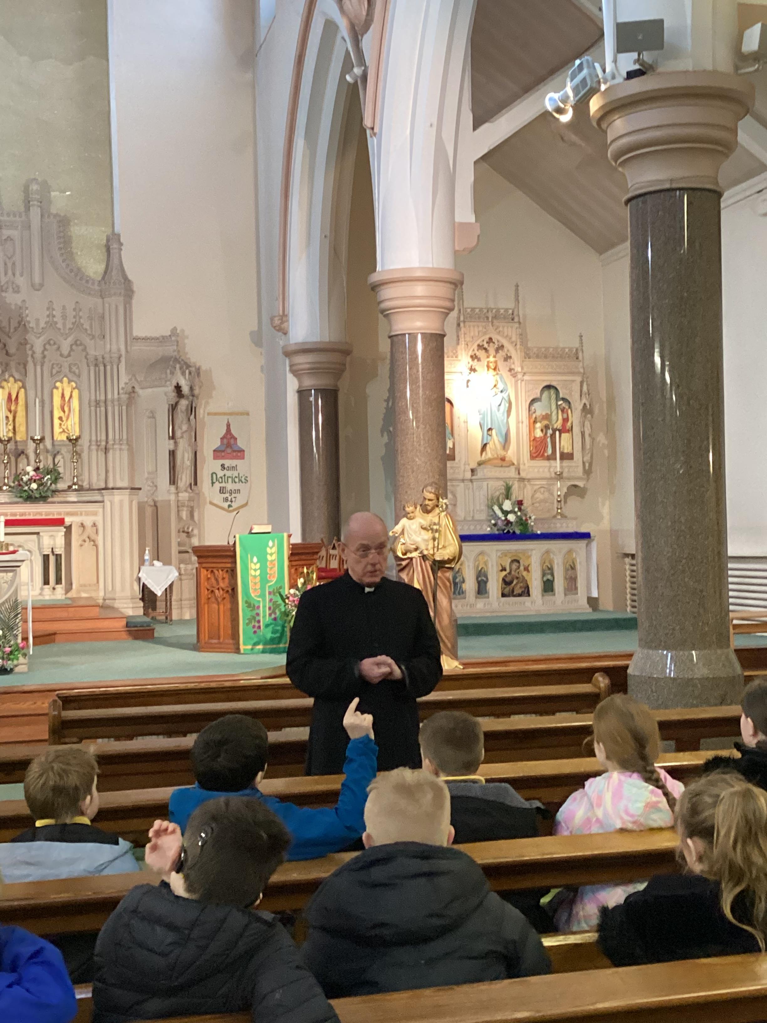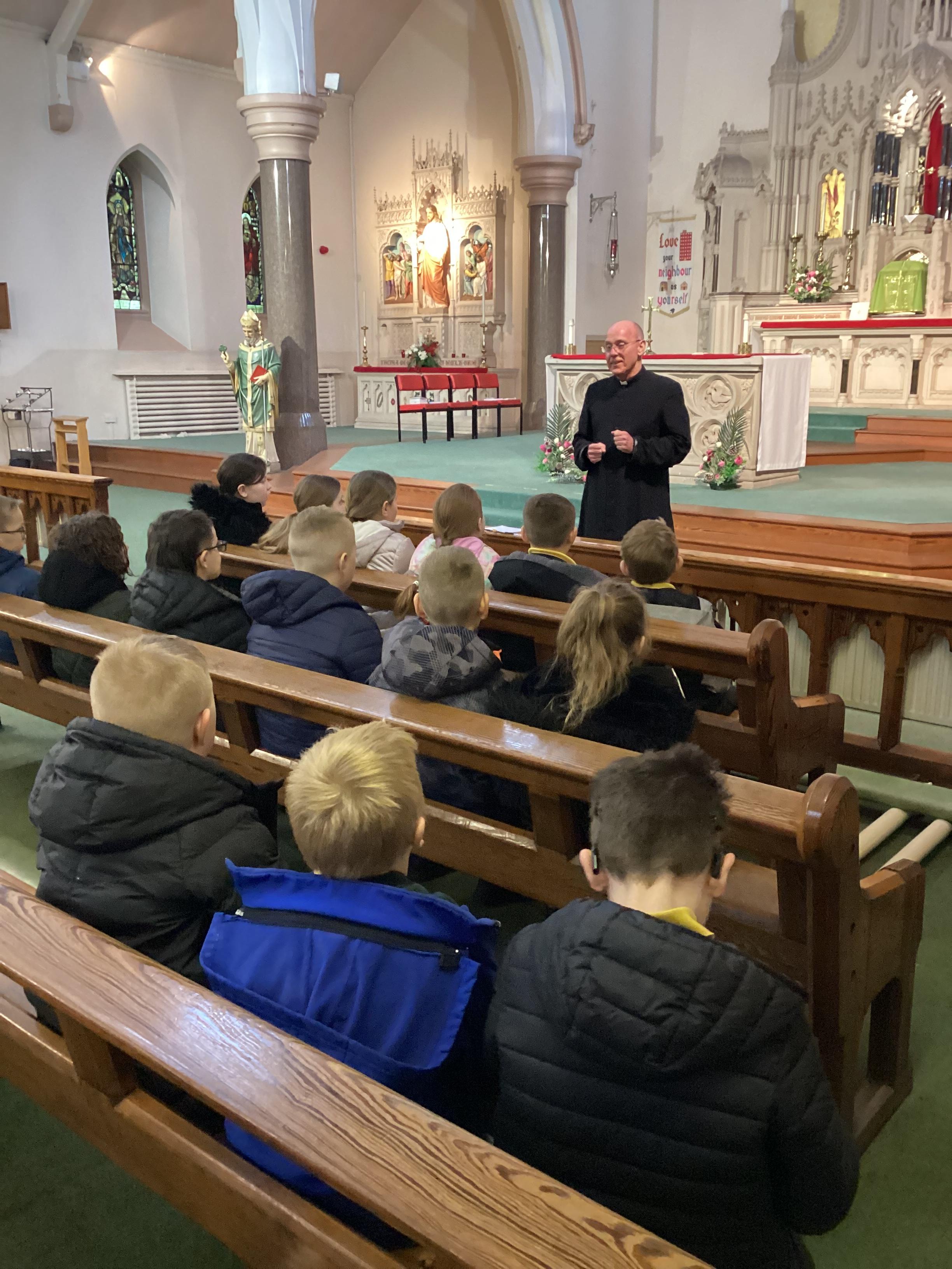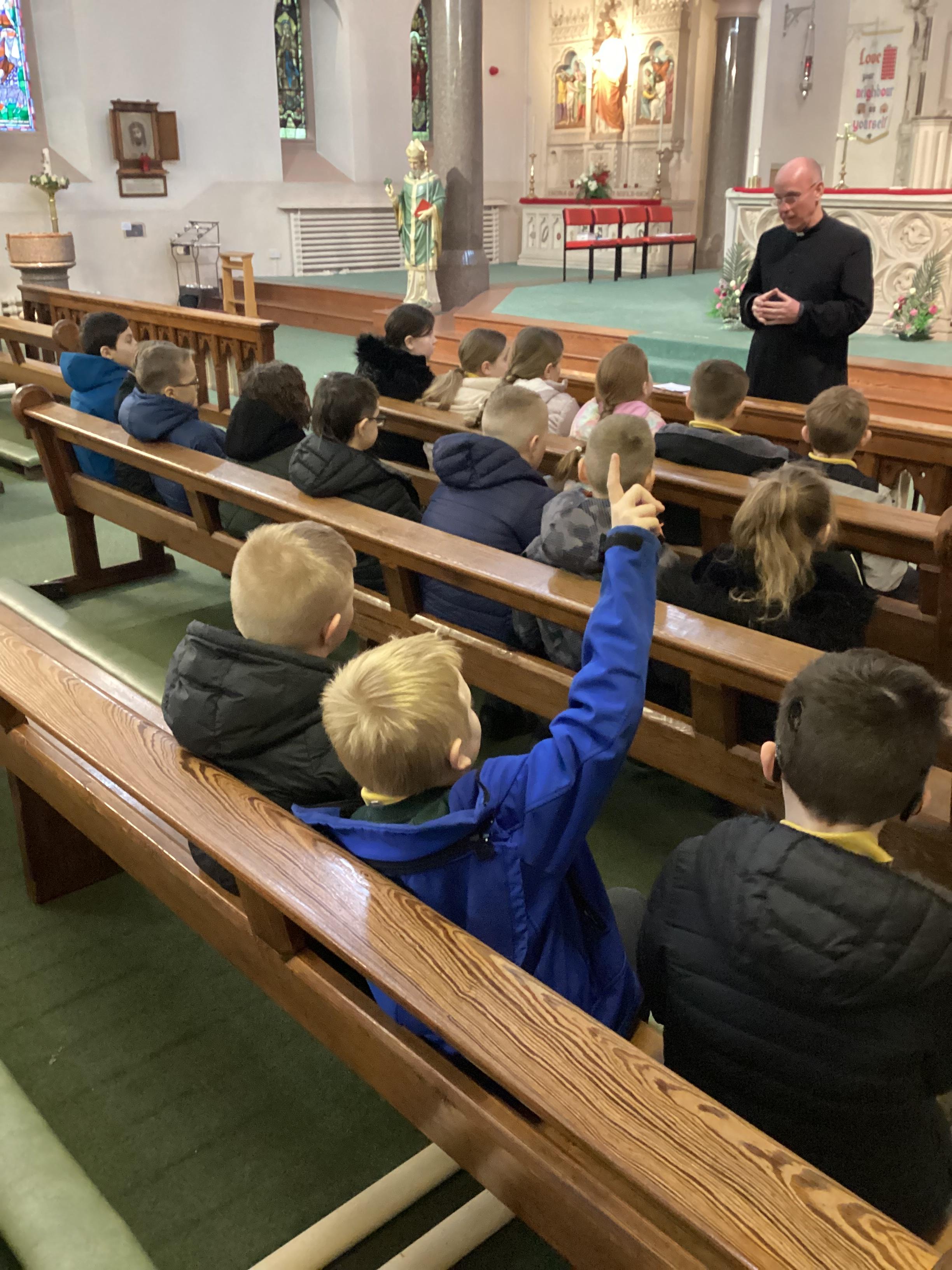 This morning, the Sacramental Preparation Group visited Father O'Shea at Church to discuss the Sacrament of Reconciliation. Father explained the importance of this Sacrament and showed the children the different parts of the Confessionals. The Group will make their Confessions over the next few weeks. Please pray for the children at this time.