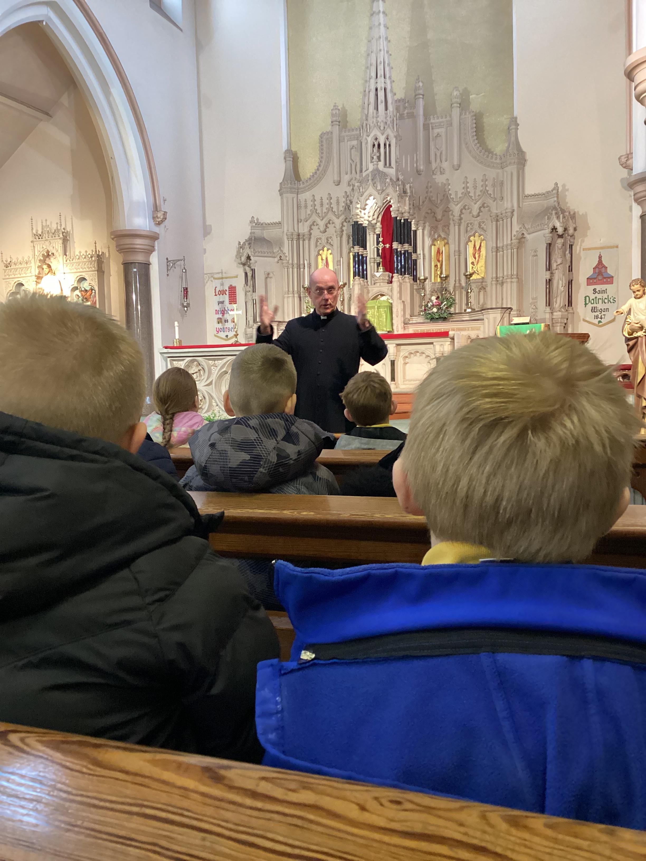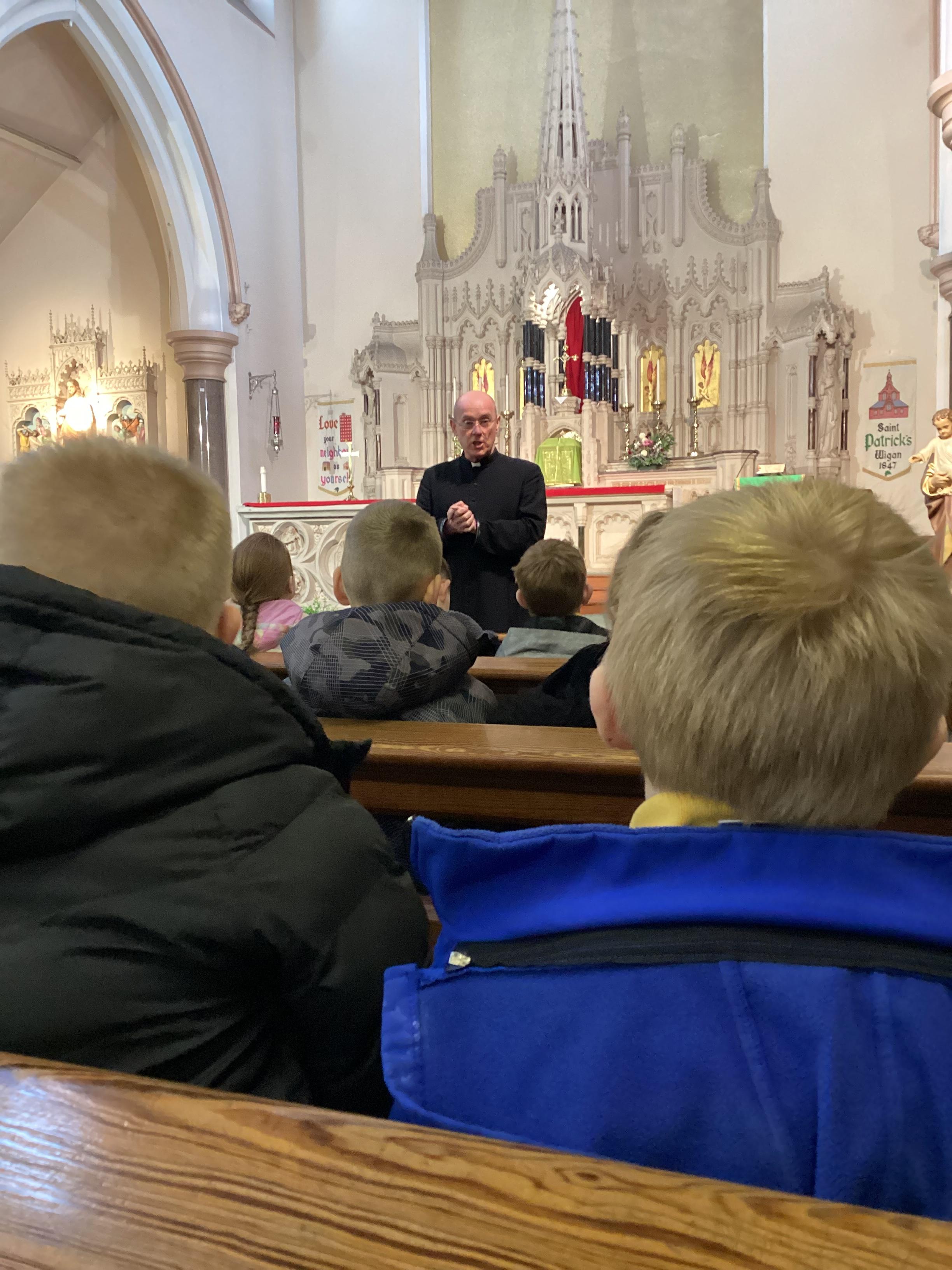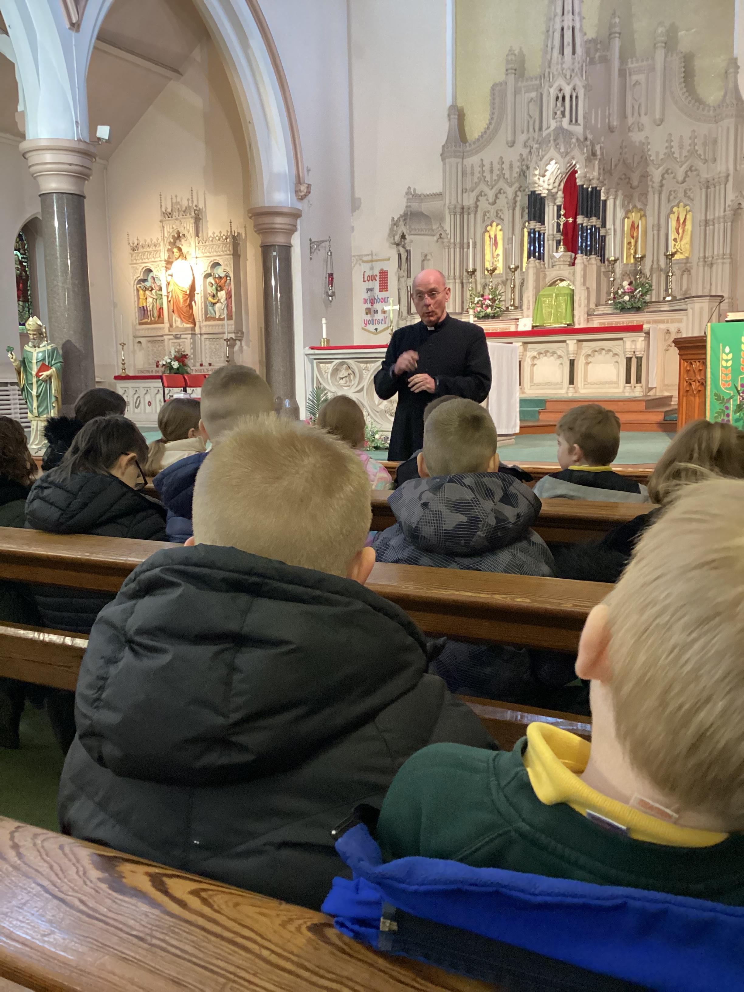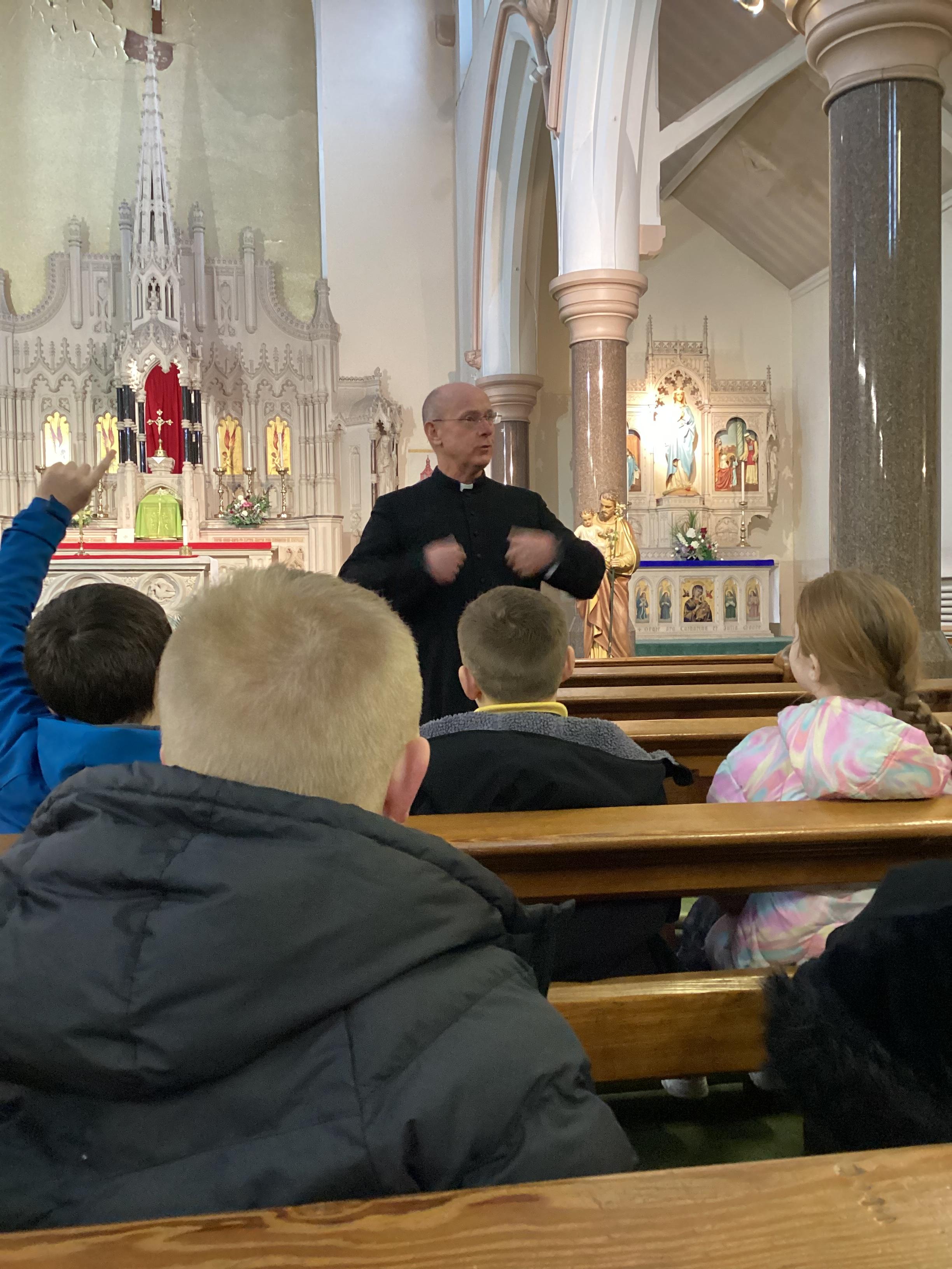This morning, the Sacramental Preparation Group visited Father O'Shea at Church to discuss the Sacrament of Reconciliation. Father explained the importance of this Sacrament and showed the children the different parts of the Confessionals. The Group will make their Confessions over the next few weeks. Please pray for the children at this time.