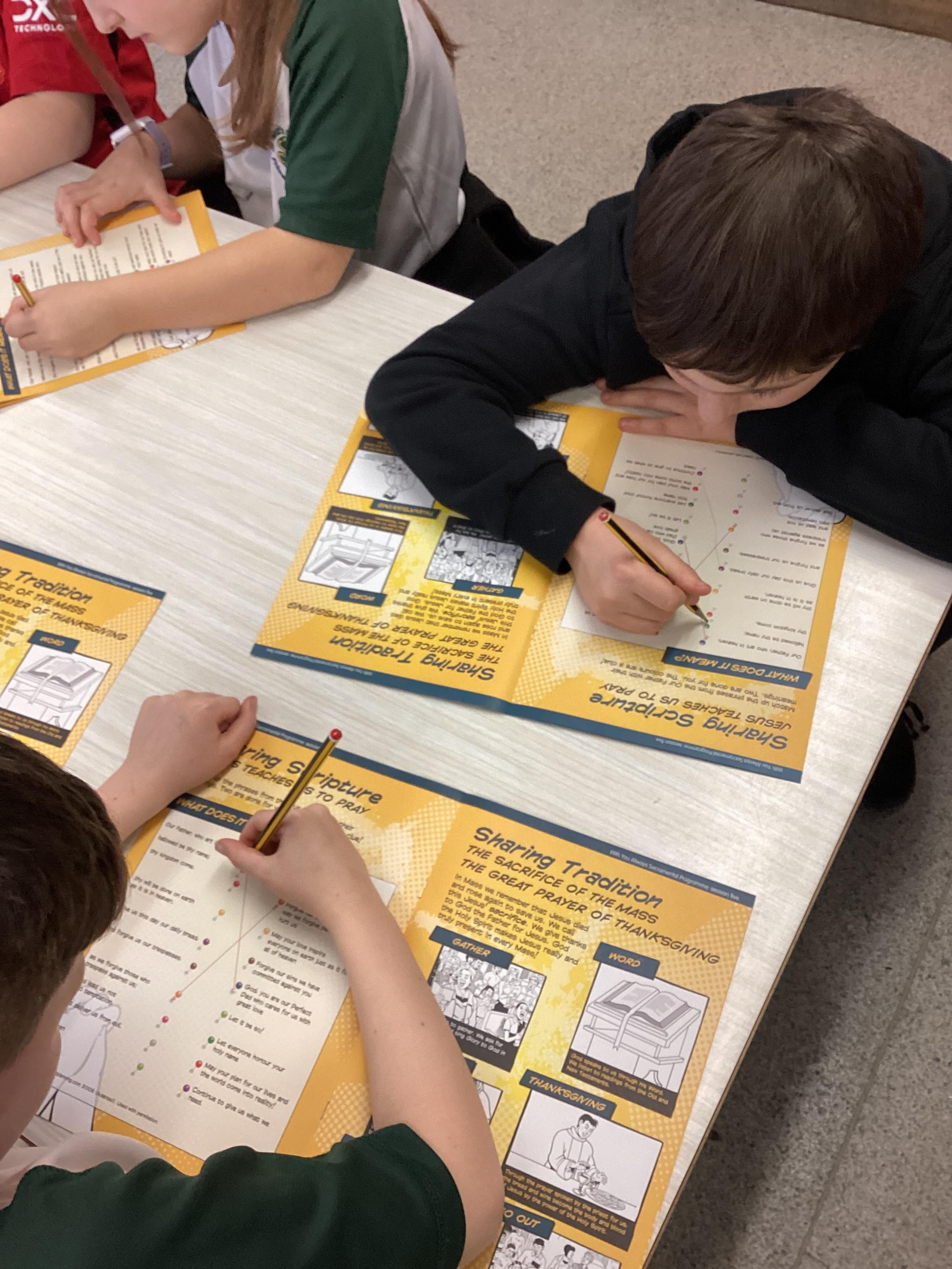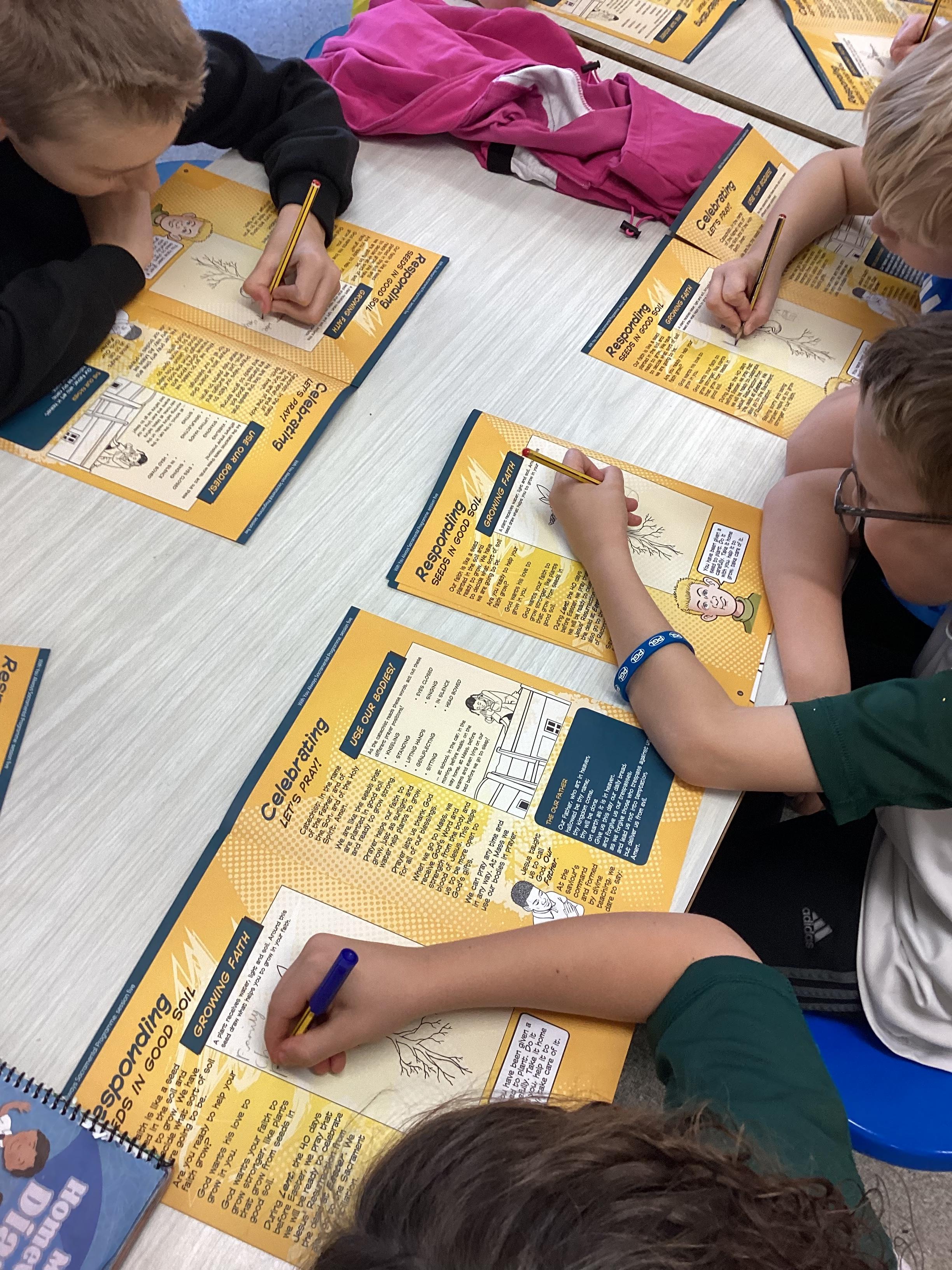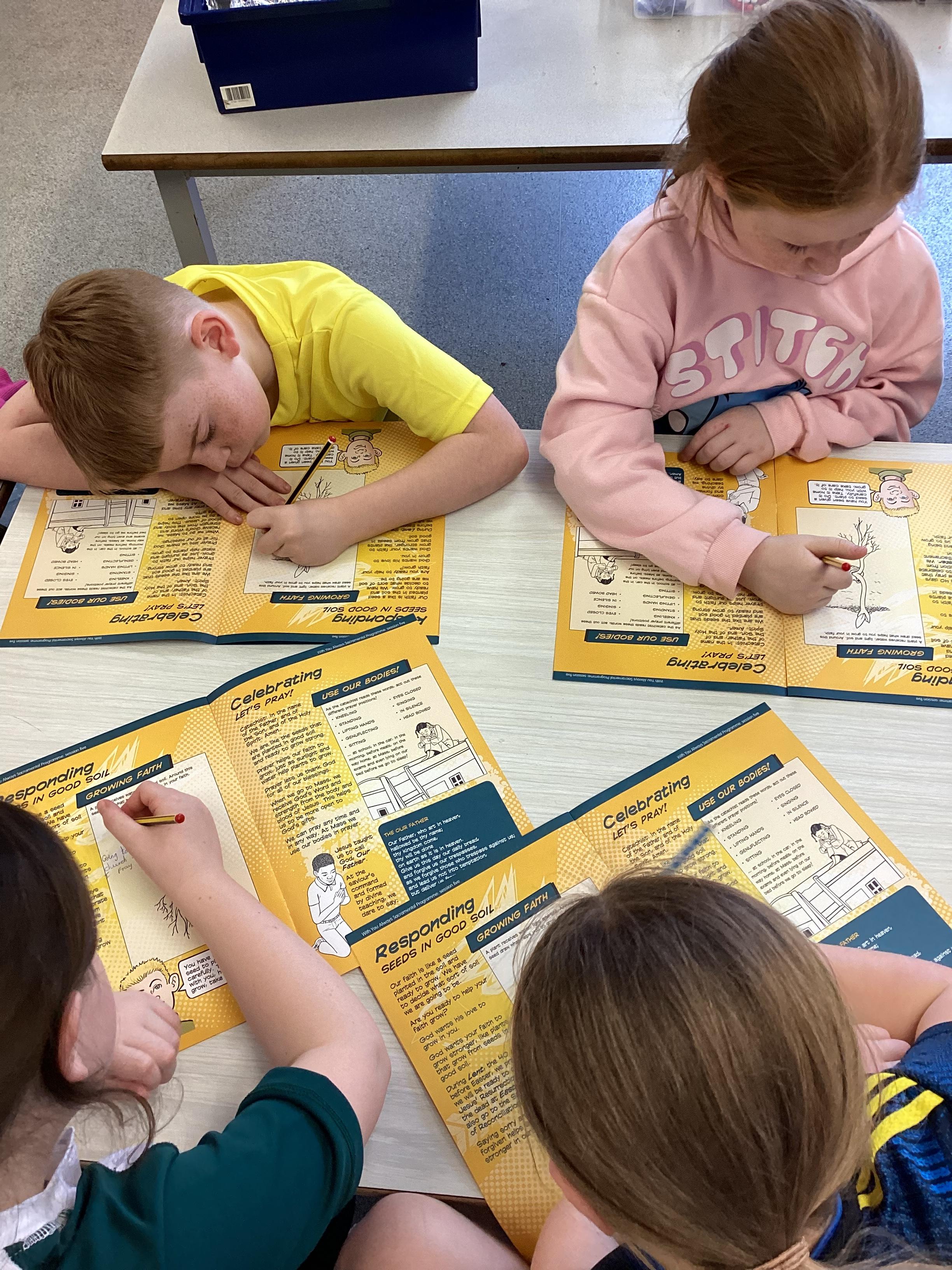 Today, we explored how Jesus taught us to pray. We learned about the Our Father and its meaning. We also discussed different prayers that we know; including how the Holy Mass is a prayer of thanksgiving. We examined how prayer can help our Faith to grow. Today, we explored how Jesus taught us to pray. We learned about the Our Father and its meaning. We also discussed different prayers that we know; including how the Holy Mass is a prayer of thanksgiving. We examined how prayer can help our Faith to grow.
