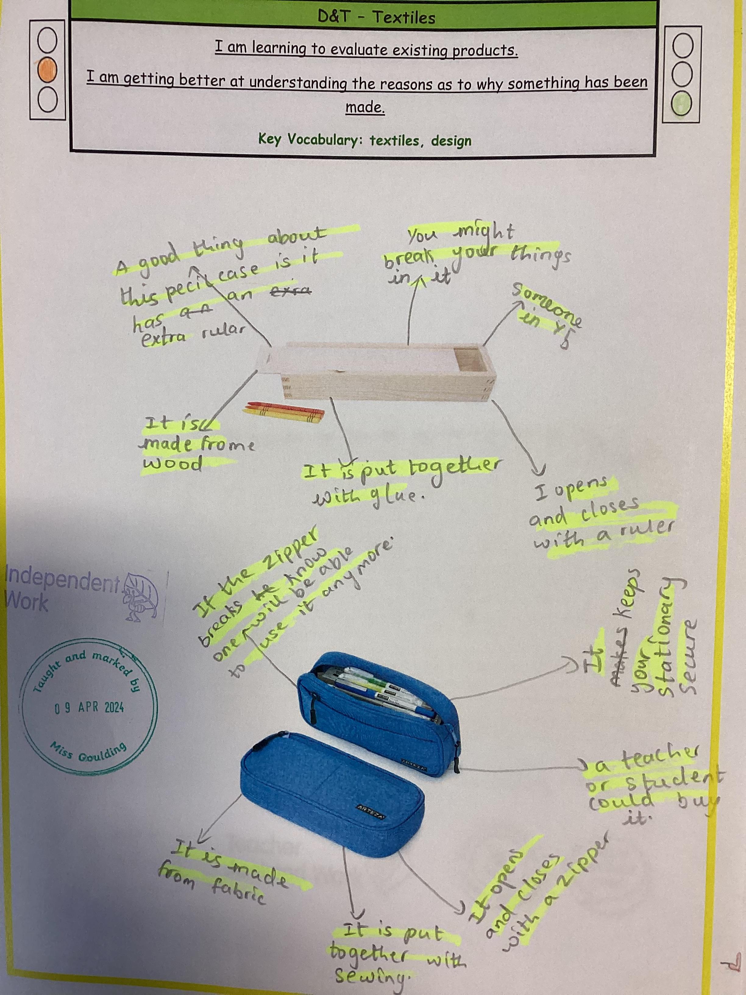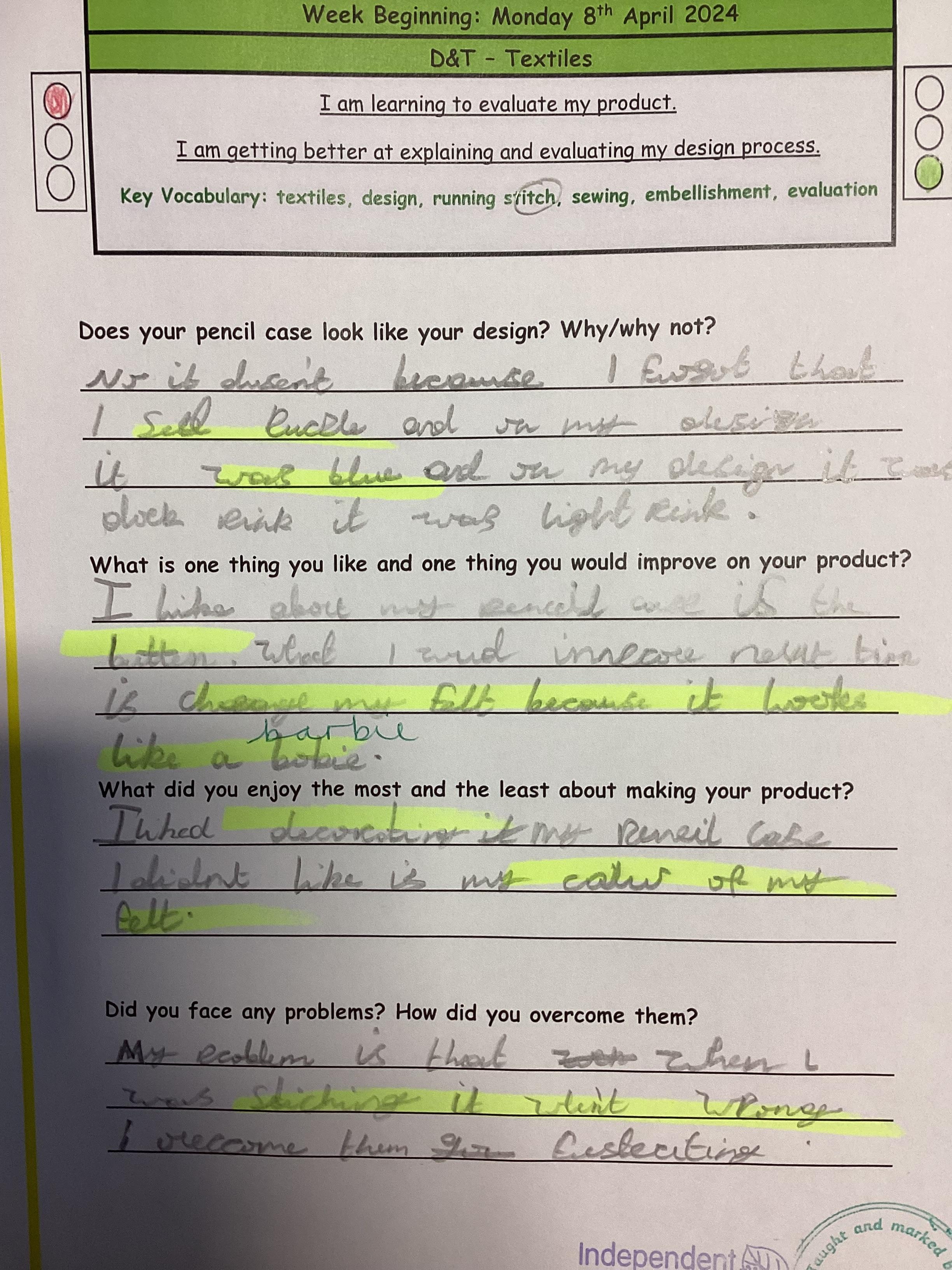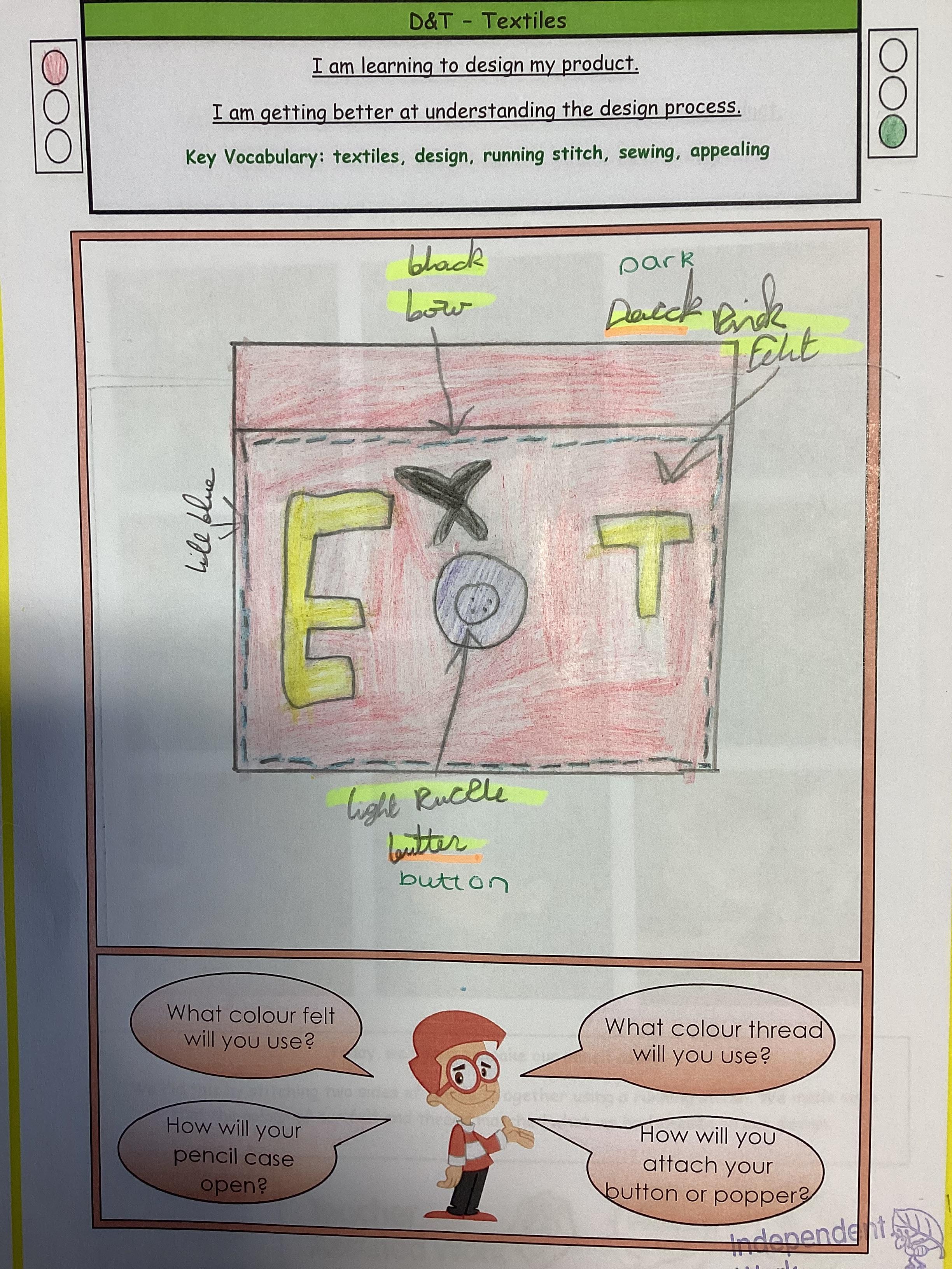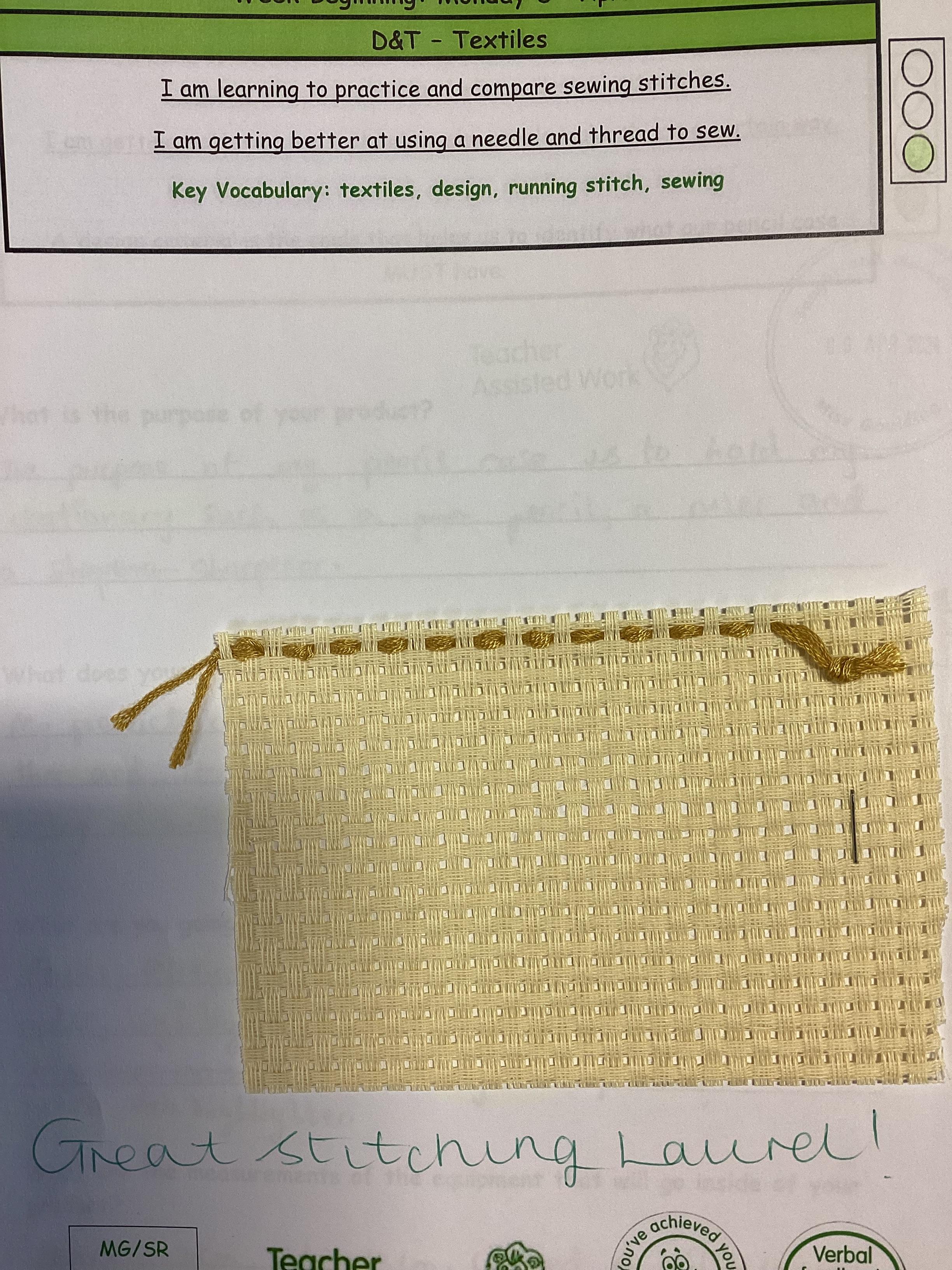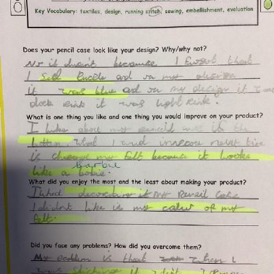 Joining textiles in different ways, choosing textiles for appearance and qualities.