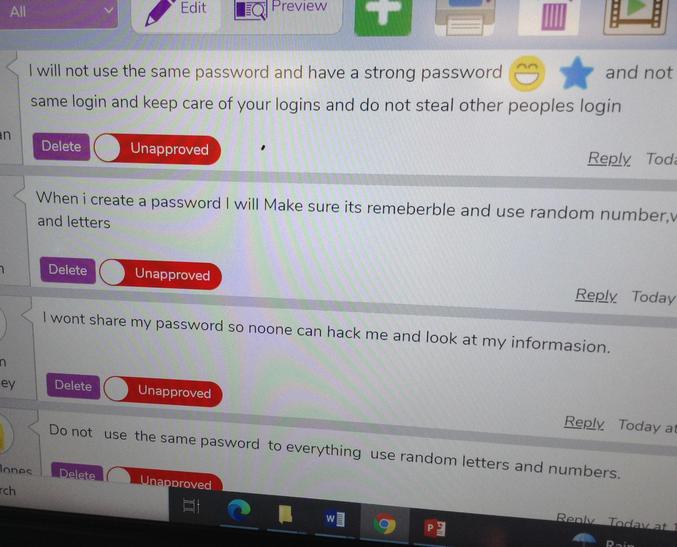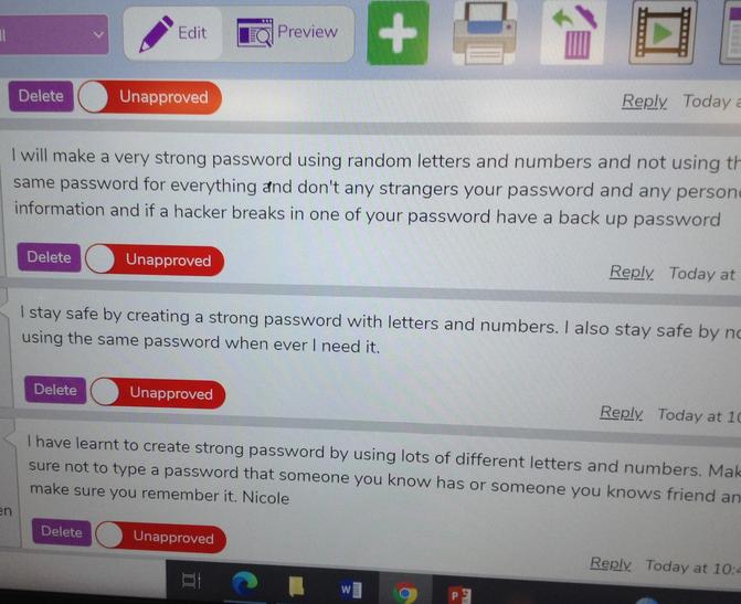 Children understand the importance of keeping information, such as their usernames and passwords, private and actively demonstrate this in lessons. Children take ownership of their work and save this in their own private space such as their My Work folder on Purple Mash.